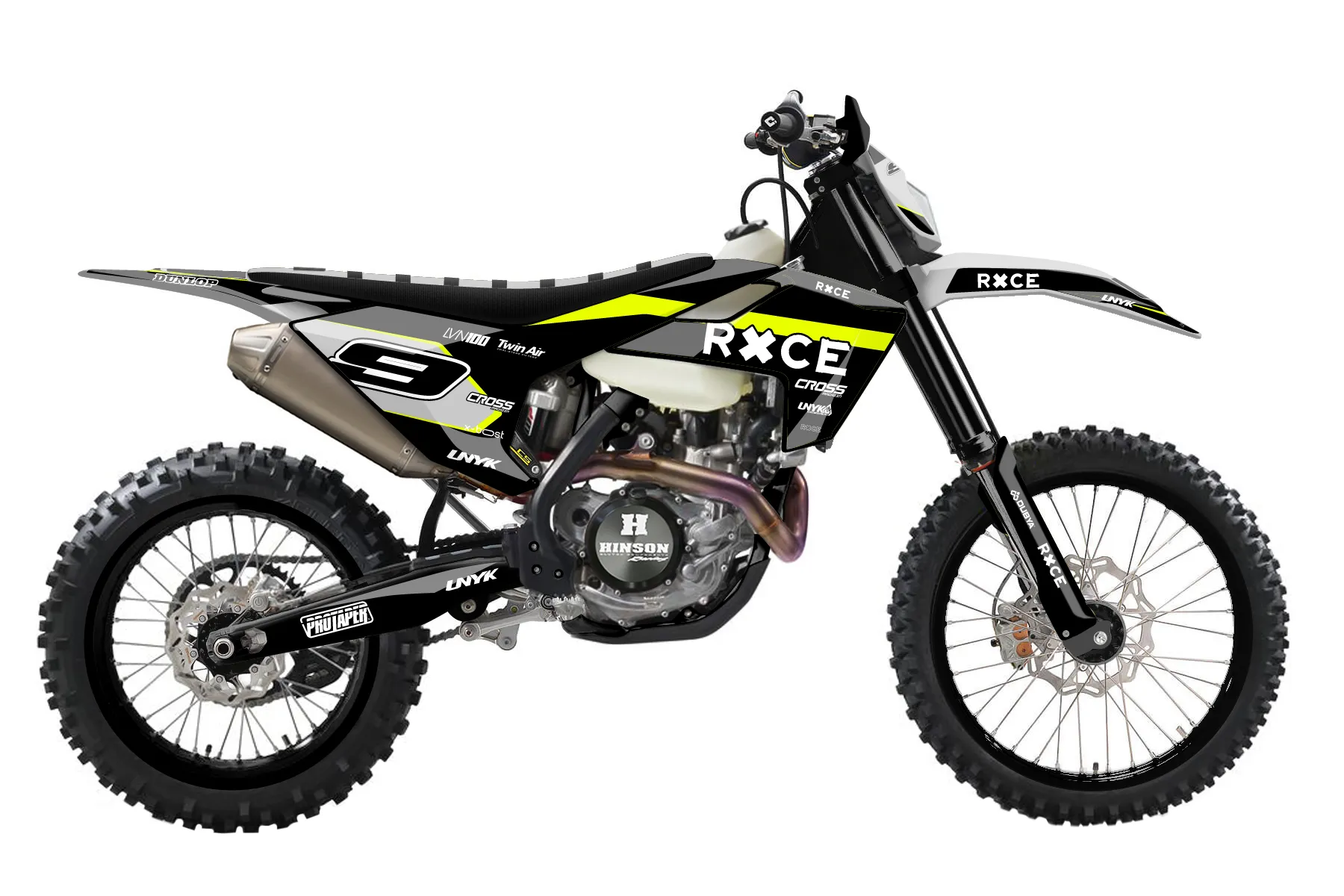 «Cyber Pirate» — готовый комплект графики серии Flow для Husqvarna Enduro Graphic Kit Husqvarna FE 350 2017. В комплекте: графика на бак и боковые облицовки, крылья (переднее и заднее), передний щиток, номерные таблички, защита вилки. Материал: ПВХ-винил 80 мкр с холодной ламинацией 300 мкр, общая толщина 380 мкр; покрытие глянцевое или матовое на выбор. Устойчив к UV-излучению, воде, бензину и мойке высокого давления. Клей акриловый на сольвентной основе — постоянный, для гибких пластиков. На простых поверхностях монтируется без нагрева; для сложных изгибов рекомендуем фен. Этот пресет можно заказать как есть или взять за основу в конструкторе: поменять цвета, добавить стартовый номер и свой бренд. Производство — 3–5 рабочих дней, доставка по России СДЭКом или Почтой, по СНГ — курьерскими службами.