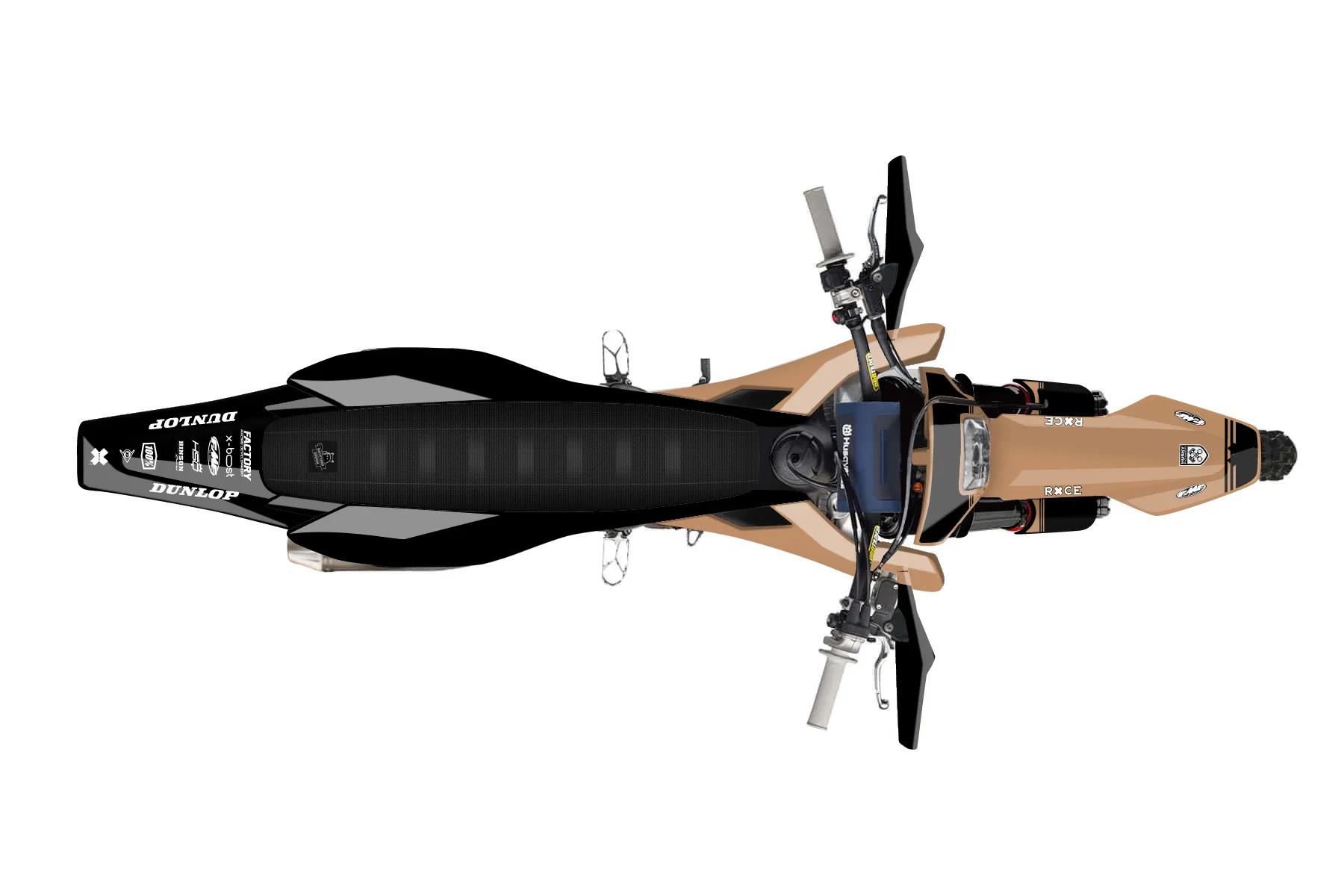 «Trademark» — готовый комплект графики серии Untucked для Husqvarna Enduro Graphic Kit Husqvarna FE 350 2017. В комплекте: графика на бак и боковые облицовки, крылья (переднее и заднее), передний щиток, номерные таблички, защита вилки. Материал: ПВХ-винил 80 мкр с холодной ламинацией 300 мкр, общая толщина 380 мкр; покрытие глянцевое или матовое на выбор. Устойчив к UV-излучению, воде, бензину и мойке высокого давления. Клей акриловый на сольвентной основе — постоянный, для гибких пластиков. На простых поверхностях монтируется без нагрева; для сложных изгибов рекомендуем фен. Этот пресет можно заказать как есть или взять за основу в конструкторе: поменять цвета, добавить стартовый номер и свой бренд. Производство — 3–5 рабочих дней, доставка по России СДЭКом или Почтой, по СНГ — курьерскими службами.