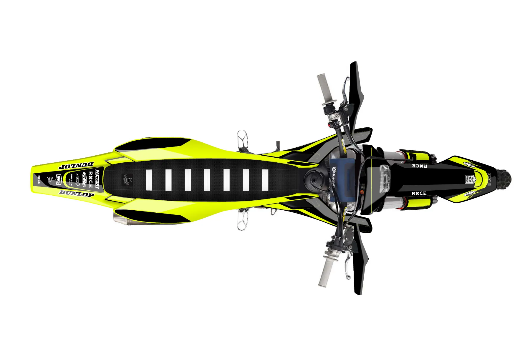 «Vivid Neon» — готовый комплект графики серии Untucked для Husqvarna Enduro Graphic Kit Husqvarna FE 350 2017. В комплекте: графика на бак и боковые облицовки, крылья (переднее и заднее), передний щиток, номерные таблички, защита вилки. Материал: ПВХ-винил 80 мкр с холодной ламинацией 300 мкр, общая толщина 380 мкр; покрытие глянцевое или матовое на выбор. Устойчив к UV-излучению, воде, бензину и мойке высокого давления. Клей акриловый на сольвентной основе — постоянный, для гибких пластиков. На простых поверхностях монтируется без нагрева; для сложных изгибов рекомендуем фен. Этот пресет можно заказать как есть или взять за основу в конструкторе: поменять цвета, добавить стартовый номер и свой бренд. Производство — 3–5 рабочих дней, доставка по России СДЭКом или Почтой, по СНГ — курьерскими службами.