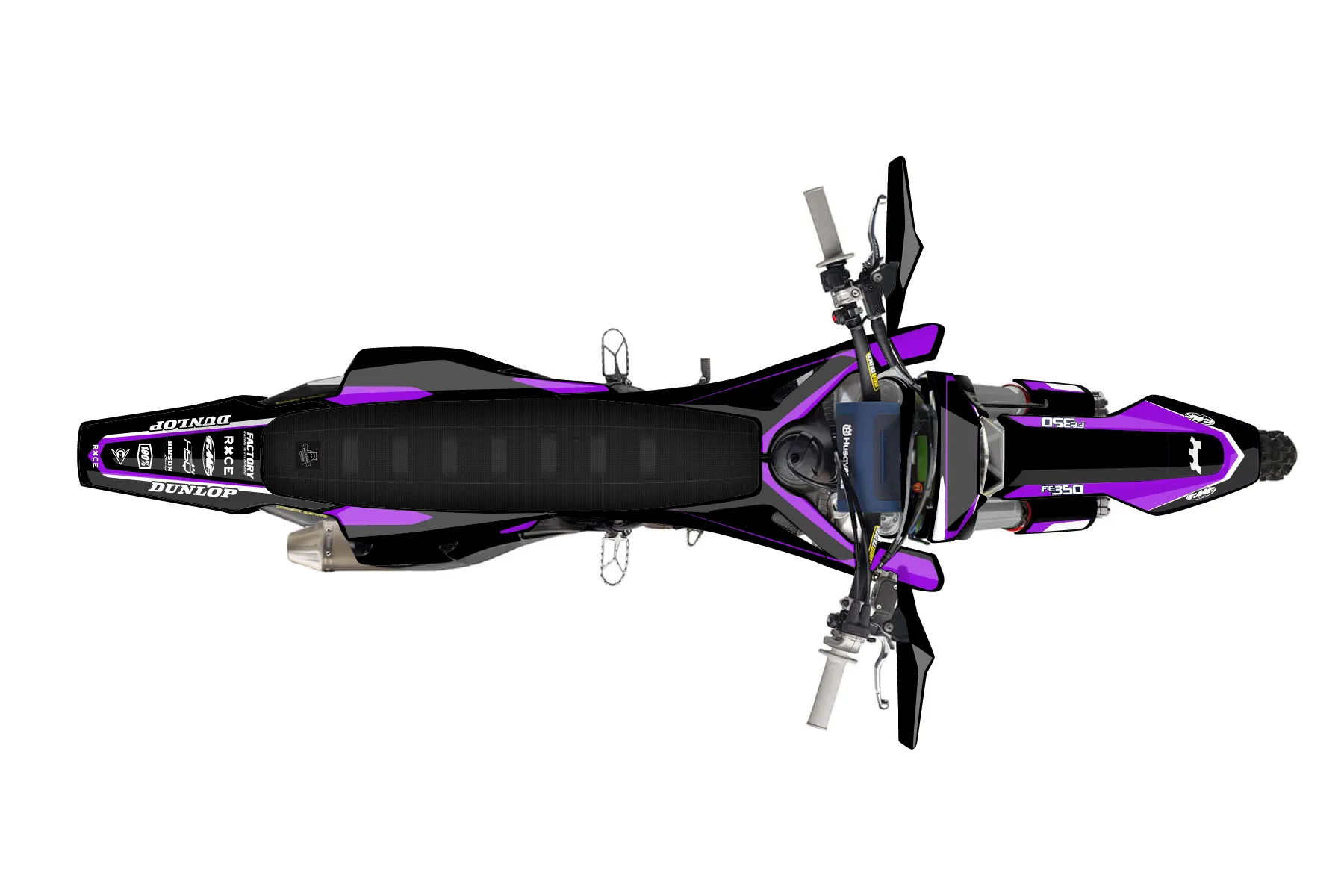 «Purple» — готовый комплект графики серии Flow для Husqvarna Enduro Graphic Kit Husqvarna FE 350 2020. В комплекте: графика на бак и боковые облицовки, крылья (переднее и заднее), передний щиток, номерные таблички, защита вилки. Материал: ПВХ-винил 80 мкр с холодной ламинацией 300 мкр, общая толщина 380 мкр; покрытие глянцевое или матовое на выбор. Устойчив к UV-излучению, воде, бензину и мойке высокого давления. Клей акриловый на сольвентной основе — постоянный, для гибких пластиков. На простых поверхностях монтируется без нагрева; для сложных изгибов рекомендуем фен. Этот пресет можно заказать как есть или взять за основу в конструкторе: поменять цвета, добавить стартовый номер и свой бренд. Производство — 3–5 рабочих дней, доставка по России СДЭКом или Почтой, по СНГ — курьерскими службами.