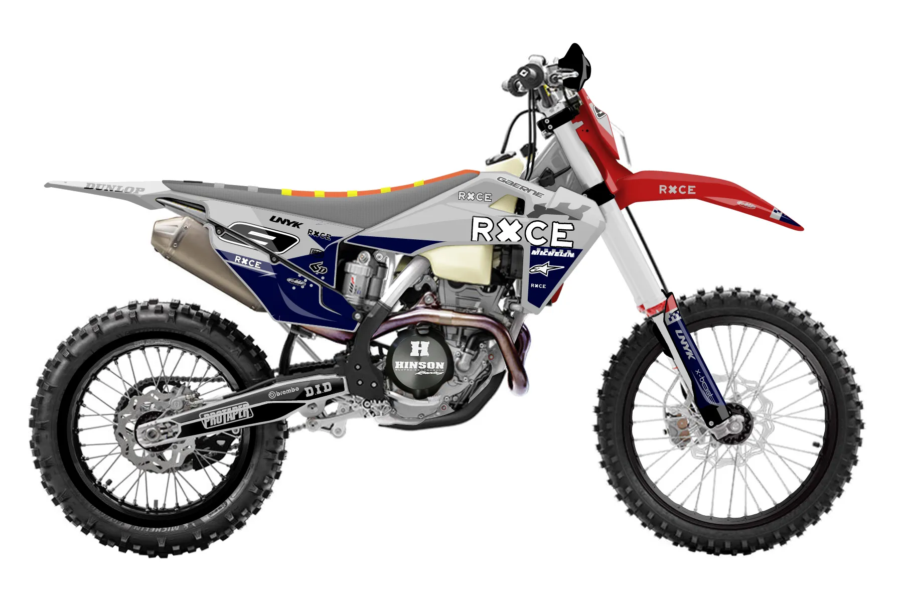 «Primerica Pure» — готовый комплект графики серии Staple для Husqvarna Enduro Graphic Kit Husqvarna FE 350 2020. В комплекте: графика на бак и боковые облицовки, крылья (переднее и заднее), передний щиток, номерные таблички, защита вилки. Материал: ПВХ-винил 80 мкр с холодной ламинацией 300 мкр, общая толщина 380 мкр; покрытие глянцевое или матовое на выбор. Устойчив к UV-излучению, воде, бензину и мойке высокого давления. Клей акриловый на сольвентной основе — постоянный, для гибких пластиков. На простых поверхностях монтируется без нагрева; для сложных изгибов рекомендуем фен. Этот пресет можно заказать как есть или взять за основу в конструкторе: поменять цвета, добавить стартовый номер и свой бренд. Производство — 3–5 рабочих дней, доставка по России СДЭКом или Почтой, по СНГ — курьерскими службами.