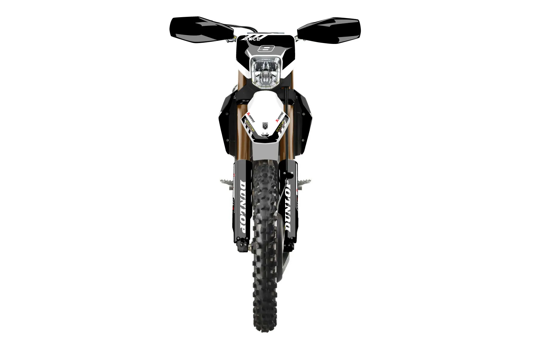 «Bang» — готовый комплект графики серии Maverick для Husqvarna Enduro Graphic Kit Husqvarna FE 350 2024. В комплекте: графика на бак и боковые облицовки, крылья (переднее и заднее), передний щиток, номерные таблички, защита вилки. Материал: ПВХ-винил 80 мкр с холодной ламинацией 300 мкр, общая толщина 380 мкр; покрытие глянцевое или матовое на выбор. Устойчив к UV-излучению, воде, бензину и мойке высокого давления. Клей акриловый на сольвентной основе — постоянный, для гибких пластиков. На простых поверхностях монтируется без нагрева; для сложных изгибов рекомендуем фен. Этот пресет можно заказать как есть или взять за основу в конструкторе: поменять цвета, добавить стартовый номер и свой бренд. Производство — 3–5 рабочих дней, доставка по России СДЭКом или Почтой, по СНГ — курьерскими службами.