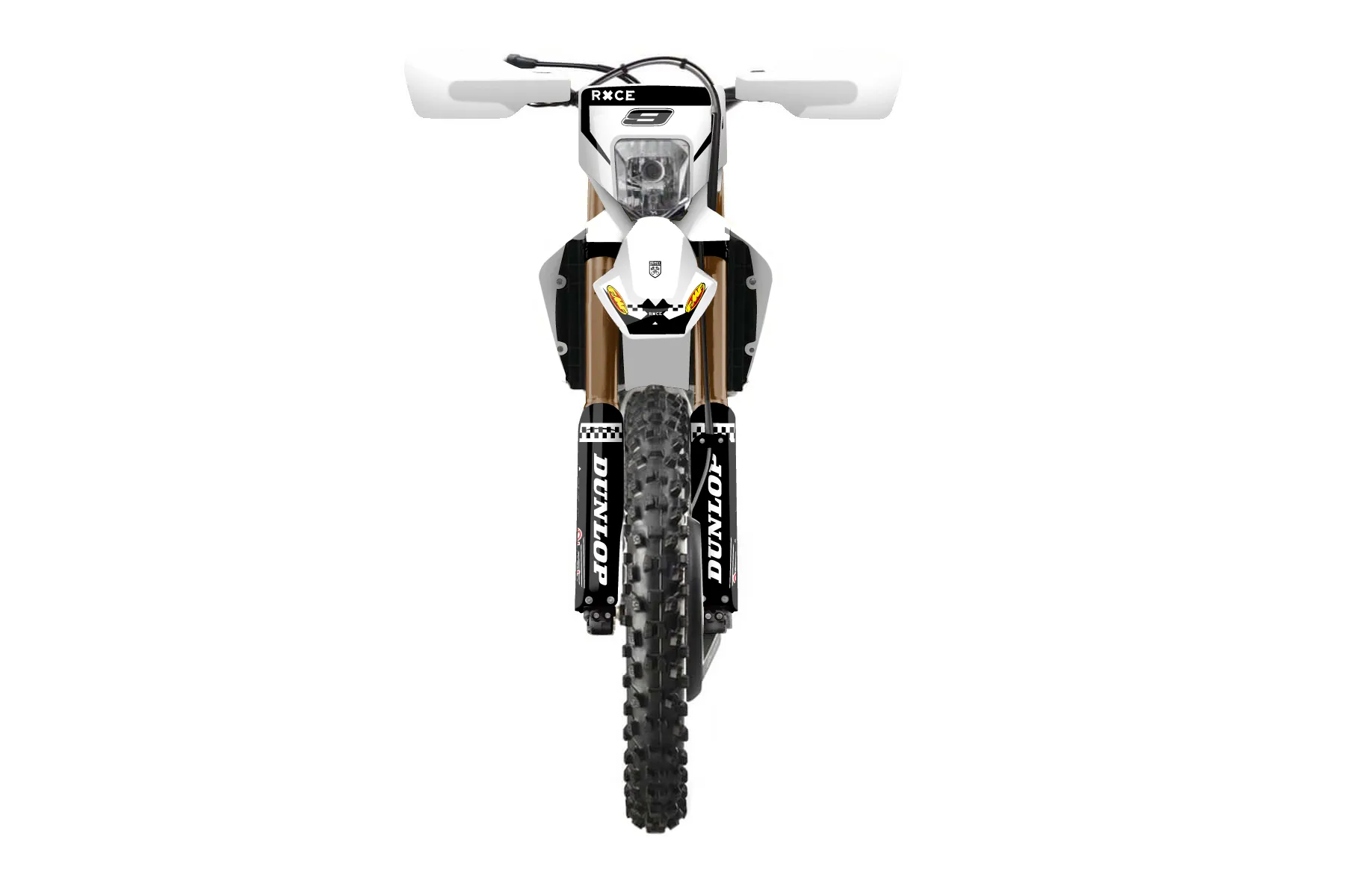 «Draft» — готовый комплект графики серии Staple для Husqvarna Enduro Graphic Kit Husqvarna FE 450 2020. В комплекте: графика на бак и боковые облицовки, крылья (переднее и заднее), передний щиток, номерные таблички, защита вилки. Материал: ПВХ-винил 80 мкр с холодной ламинацией 300 мкр, общая толщина 380 мкр; покрытие глянцевое или матовое на выбор. Устойчив к UV-излучению, воде, бензину и мойке высокого давления. Клей акриловый на сольвентной основе — постоянный, для гибких пластиков. На простых поверхностях монтируется без нагрева; для сложных изгибов рекомендуем фен. Этот пресет можно заказать как есть или взять за основу в конструкторе: поменять цвета, добавить стартовый номер и свой бренд. Производство — 3–5 рабочих дней, доставка по России СДЭКом или Почтой, по СНГ — курьерскими службами.