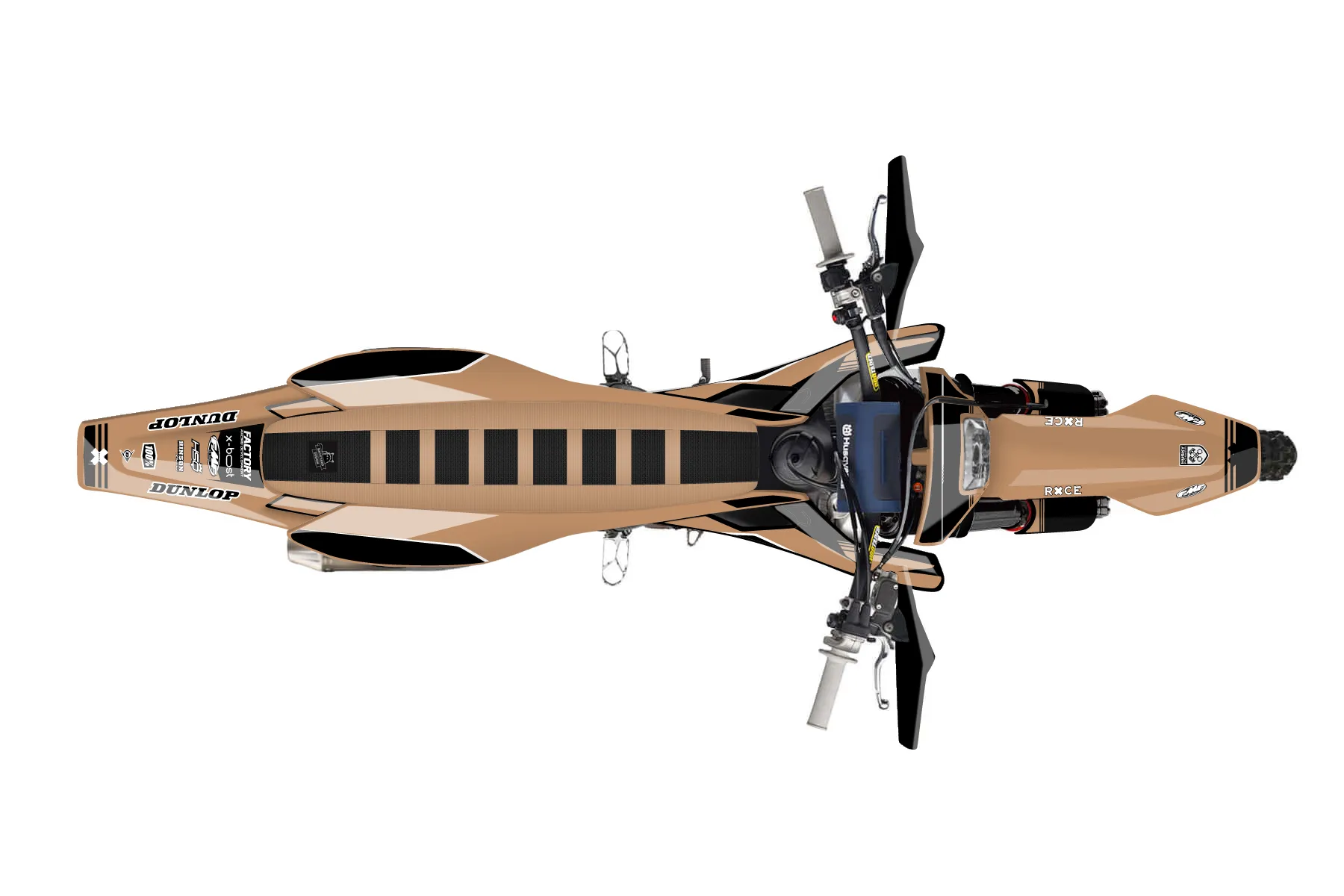 «Dew» — готовый комплект графики серии Untucked для Husqvarna Enduro Graphic Kit Husqvarna FE 501 2017. В комплекте: графика на бак и боковые облицовки, крылья (переднее и заднее), передний щиток, номерные таблички, защита вилки. Материал: ПВХ-винил 80 мкр с холодной ламинацией 300 мкр, общая толщина 380 мкр; покрытие глянцевое или матовое на выбор. Устойчив к UV-излучению, воде, бензину и мойке высокого давления. Клей акриловый на сольвентной основе — постоянный, для гибких пластиков. На простых поверхностях монтируется без нагрева; для сложных изгибов рекомендуем фен. Этот пресет можно заказать как есть или взять за основу в конструкторе: поменять цвета, добавить стартовый номер и свой бренд. Производство — 3–5 рабочих дней, доставка по России СДЭКом или Почтой, по СНГ — курьерскими службами.