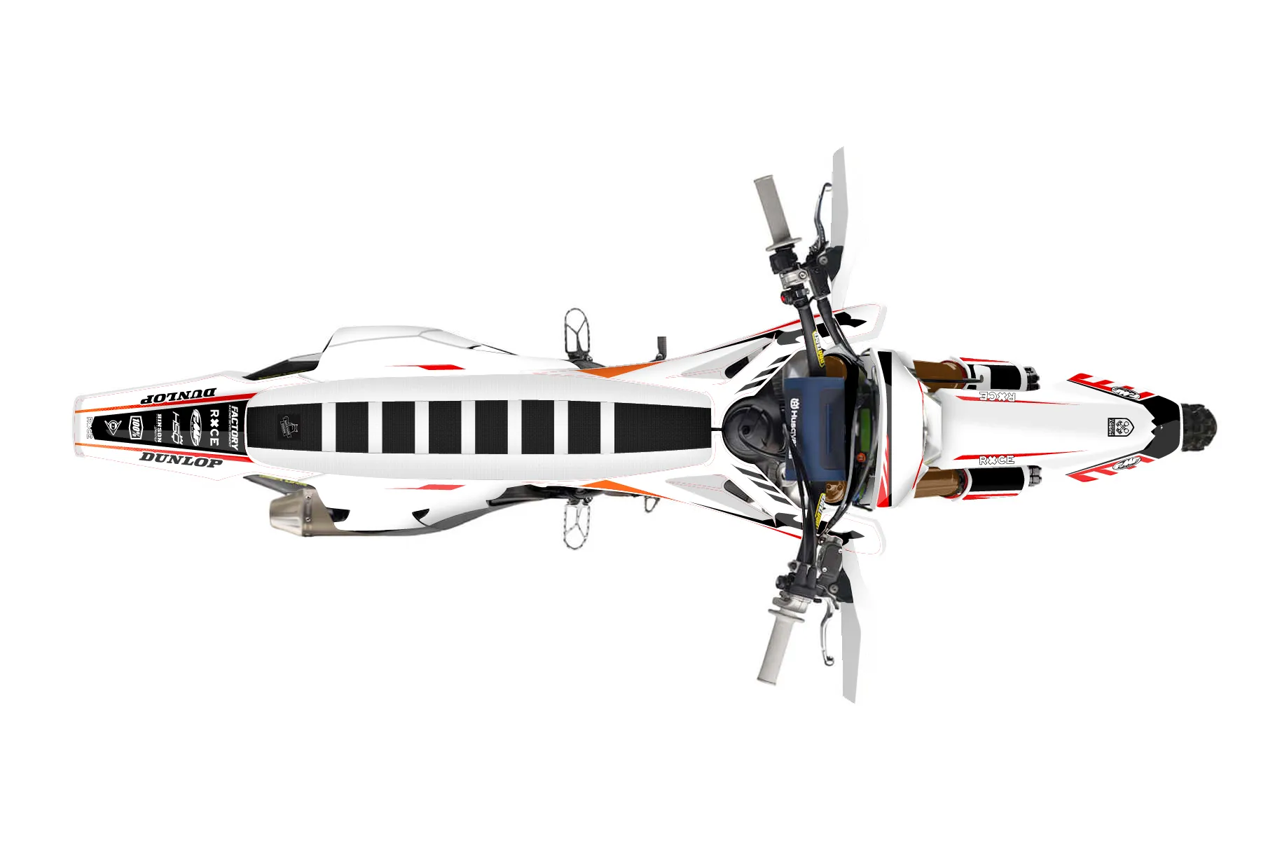 «Invent» — готовый комплект графики серии Maverick для Husqvarna Enduro Graphic Kit Husqvarna FE 501 2020. В комплекте: графика на бак и боковые облицовки, крылья (переднее и заднее), передний щиток, номерные таблички, защита вилки. Материал: ПВХ-винил 80 мкр с холодной ламинацией 300 мкр, общая толщина 380 мкр; покрытие глянцевое или матовое на выбор. Устойчив к UV-излучению, воде, бензину и мойке высокого давления. Клей акриловый на сольвентной основе — постоянный, для гибких пластиков. На простых поверхностях монтируется без нагрева; для сложных изгибов рекомендуем фен. Этот пресет можно заказать как есть или взять за основу в конструкторе: поменять цвета, добавить стартовый номер и свой бренд. Производство — 3–5 рабочих дней, доставка по России СДЭКом или Почтой, по СНГ — курьерскими службами.