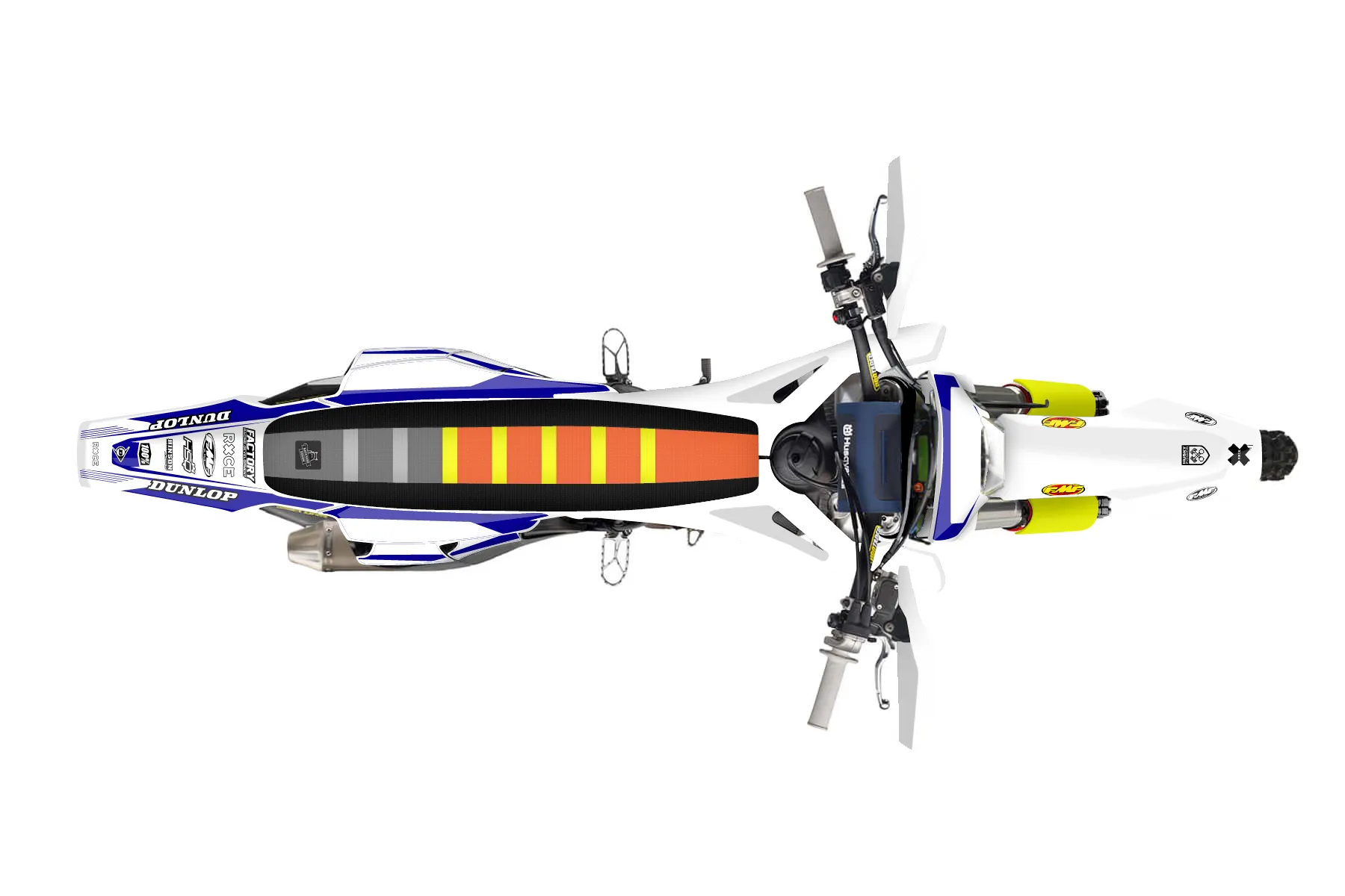 «work in progress» — готовый комплект графики серии Staple для Husqvarna Enduro Graphic Kit Husqvarna FE 501 2020. В комплекте: графика на бак и боковые облицовки, крылья (переднее и заднее), передний щиток, номерные таблички, защита вилки. Материал: ПВХ-винил 80 мкр с холодной ламинацией 300 мкр, общая толщина 380 мкр; покрытие глянцевое или матовое на выбор. Устойчив к UV-излучению, воде, бензину и мойке высокого давления. Клей акриловый на сольвентной основе — постоянный, для гибких пластиков. На простых поверхностях монтируется без нагрева; для сложных изгибов рекомендуем фен. Этот пресет можно заказать как есть или взять за основу в конструкторе: поменять цвета, добавить стартовый номер и свой бренд. Производство — 3–5 рабочих дней, доставка по России СДЭКом или Почтой, по СНГ — курьерскими службами.