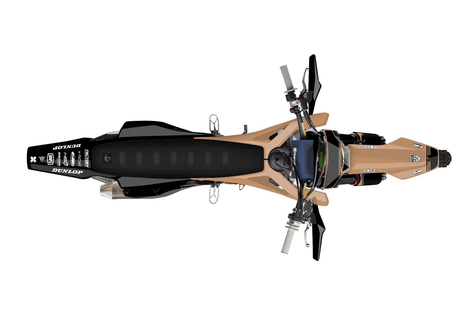 «Trademark» — готовый комплект графики серии Untucked для Husqvarna Enduro Graphic Kit Husqvarna FE 501 2020. В комплекте: графика на бак и боковые облицовки, крылья (переднее и заднее), передний щиток, номерные таблички, защита вилки. Материал: ПВХ-винил 80 мкр с холодной ламинацией 300 мкр, общая толщина 380 мкр; покрытие глянцевое или матовое на выбор. Устойчив к UV-излучению, воде, бензину и мойке высокого давления. Клей акриловый на сольвентной основе — постоянный, для гибких пластиков. На простых поверхностях монтируется без нагрева; для сложных изгибов рекомендуем фен. Этот пресет можно заказать как есть или взять за основу в конструкторе: поменять цвета, добавить стартовый номер и свой бренд. Производство — 3–5 рабочих дней, доставка по России СДЭКом или Почтой, по СНГ — курьерскими службами.