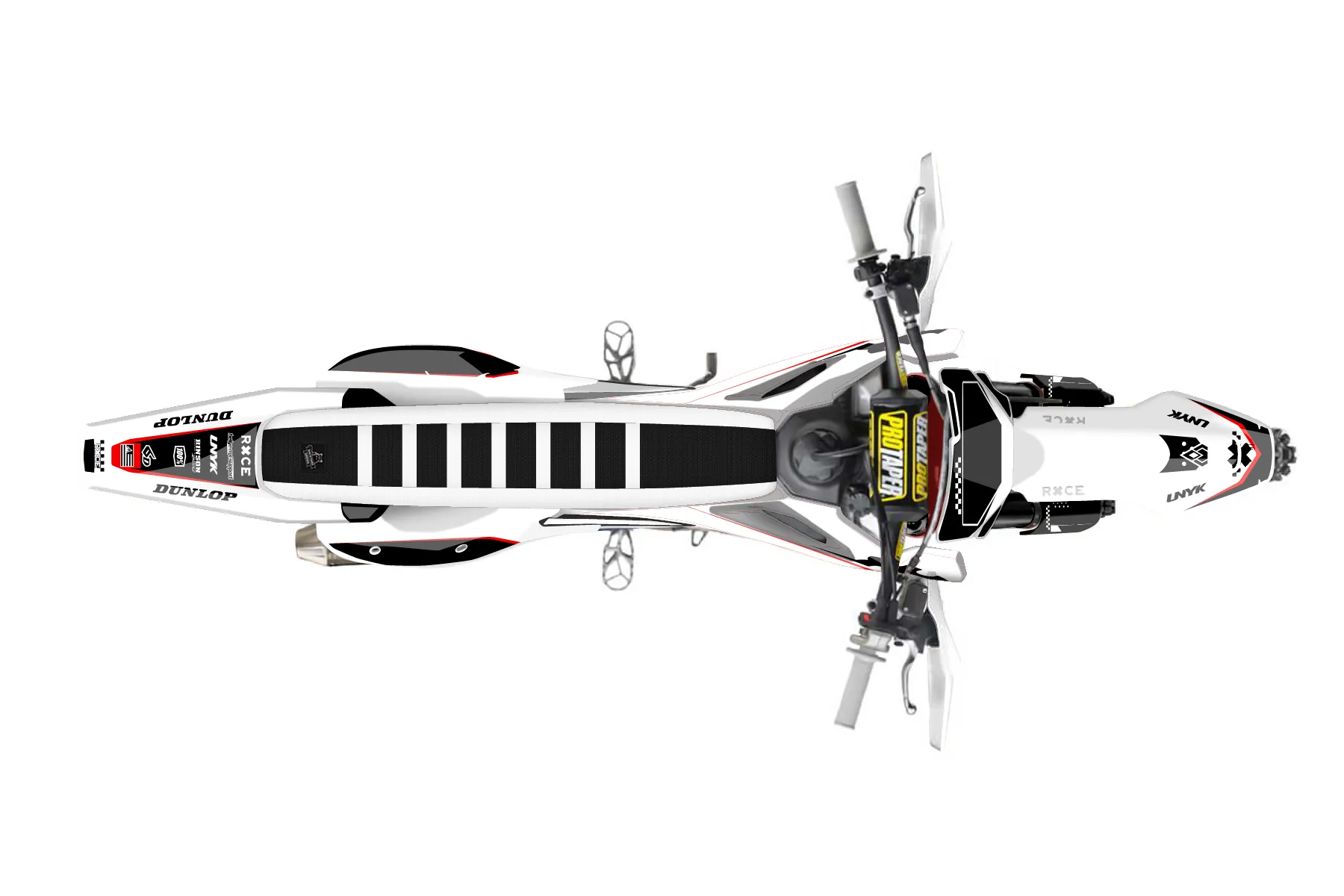 «Spirit» — готовый комплект графики серии Staple для Husqvarna Enduro Graphic Kit Husqvarna FX 350 2016. В комплекте: графика на бак и боковые облицовки, крылья (переднее и заднее), передний щиток, номерные таблички, защита вилки. Материал: ПВХ-винил 80 мкр с холодной ламинацией 300 мкр, общая толщина 380 мкр; покрытие глянцевое или матовое на выбор. Устойчив к UV-излучению, воде, бензину и мойке высокого давления. Клей акриловый на сольвентной основе — постоянный, для гибких пластиков. На простых поверхностях монтируется без нагрева; для сложных изгибов рекомендуем фен. Этот пресет можно заказать как есть или взять за основу в конструкторе: поменять цвета, добавить стартовый номер и свой бренд. Производство — 3–5 рабочих дней, доставка по России СДЭКом или Почтой, по СНГ — курьерскими службами.