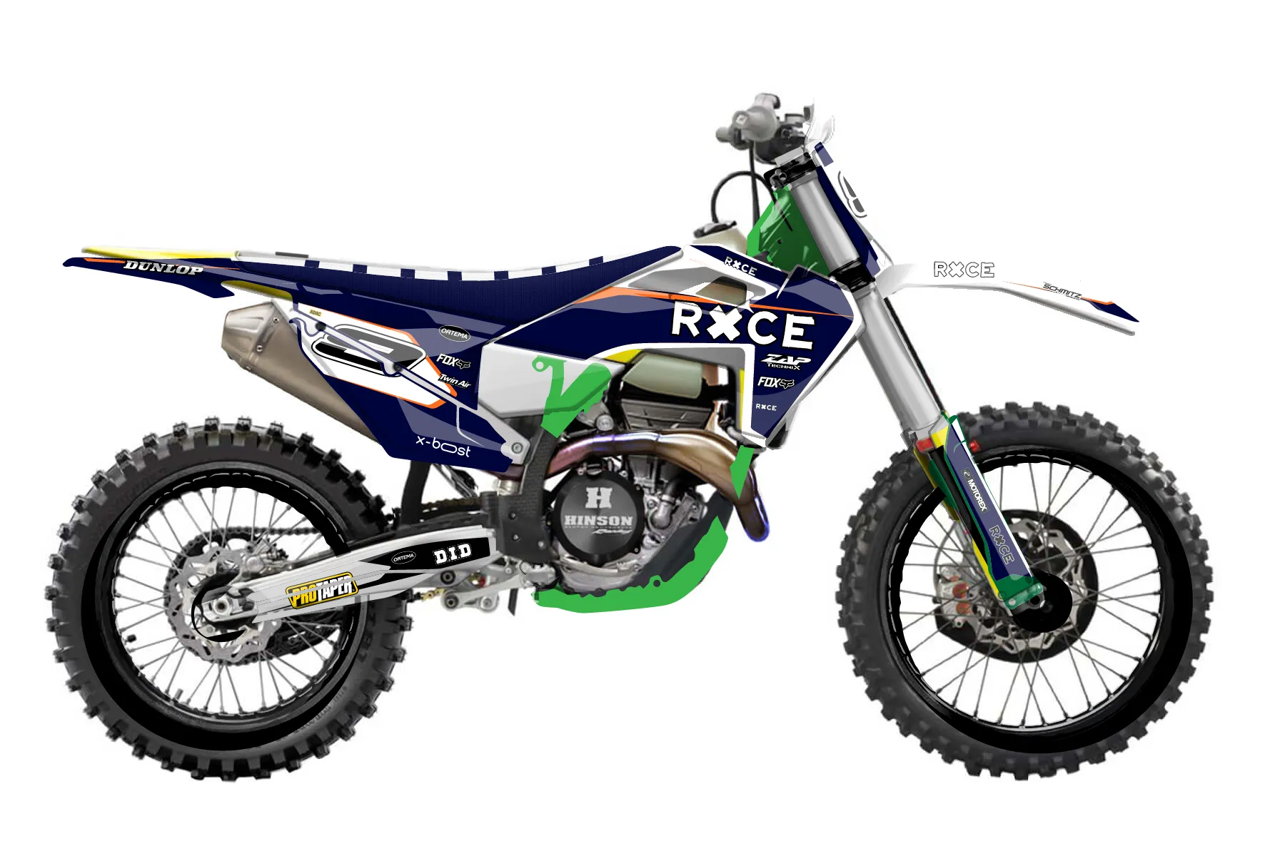 «Concepts» — готовый комплект графики серии Flow для Husqvarna Enduro Graphic Kit Husqvarna FX 350 2019. В комплекте: графика на бак и боковые облицовки, крылья (переднее и заднее), передний щиток, номерные таблички, защита вилки. Материал: ПВХ-винил 80 мкр с холодной ламинацией 300 мкр, общая толщина 380 мкр; покрытие глянцевое или матовое на выбор. Устойчив к UV-излучению, воде, бензину и мойке высокого давления. Клей акриловый на сольвентной основе — постоянный, для гибких пластиков. На простых поверхностях монтируется без нагрева; для сложных изгибов рекомендуем фен. Этот пресет можно заказать как есть или взять за основу в конструкторе: поменять цвета, добавить стартовый номер и свой бренд. Производство — 3–5 рабочих дней, доставка по России СДЭКом или Почтой, по СНГ — курьерскими службами.