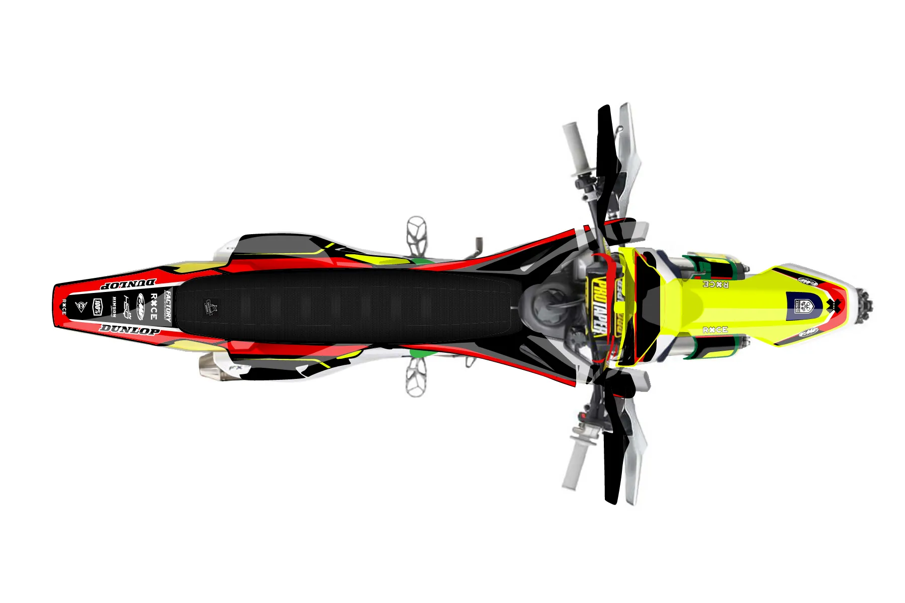 «Fluorescent» — готовый комплект графики серии Flow для Husqvarna Enduro Graphic Kit Husqvarna FX 350 2019. В комплекте: графика на бак и боковые облицовки, крылья (переднее и заднее), передний щиток, номерные таблички, защита вилки. Материал: ПВХ-винил 80 мкр с холодной ламинацией 300 мкр, общая толщина 380 мкр; покрытие глянцевое или матовое на выбор. Устойчив к UV-излучению, воде, бензину и мойке высокого давления. Клей акриловый на сольвентной основе — постоянный, для гибких пластиков. На простых поверхностях монтируется без нагрева; для сложных изгибов рекомендуем фен. Этот пресет можно заказать как есть или взять за основу в конструкторе: поменять цвета, добавить стартовый номер и свой бренд. Производство — 3–5 рабочих дней, доставка по России СДЭКом или Почтой, по СНГ — курьерскими службами.