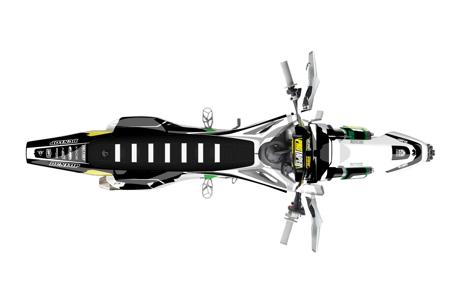 «Moto» — готовый комплект графики серии Flow для Husqvarna Enduro Graphic Kit Husqvarna FX 350 2019. В комплекте: графика на бак и боковые облицовки, крылья (переднее и заднее), передний щиток, номерные таблички, защита вилки. Материал: ПВХ-винил 80 мкр с холодной ламинацией 300 мкр, общая толщина 380 мкр; покрытие глянцевое или матовое на выбор. Устойчив к UV-излучению, воде, бензину и мойке высокого давления. Клей акриловый на сольвентной основе — постоянный, для гибких пластиков. На простых поверхностях монтируется без нагрева; для сложных изгибов рекомендуем фен. Этот пресет можно заказать как есть или взять за основу в конструкторе: поменять цвета, добавить стартовый номер и свой бренд. Производство — 3–5 рабочих дней, доставка по России СДЭКом или Почтой, по СНГ — курьерскими службами.