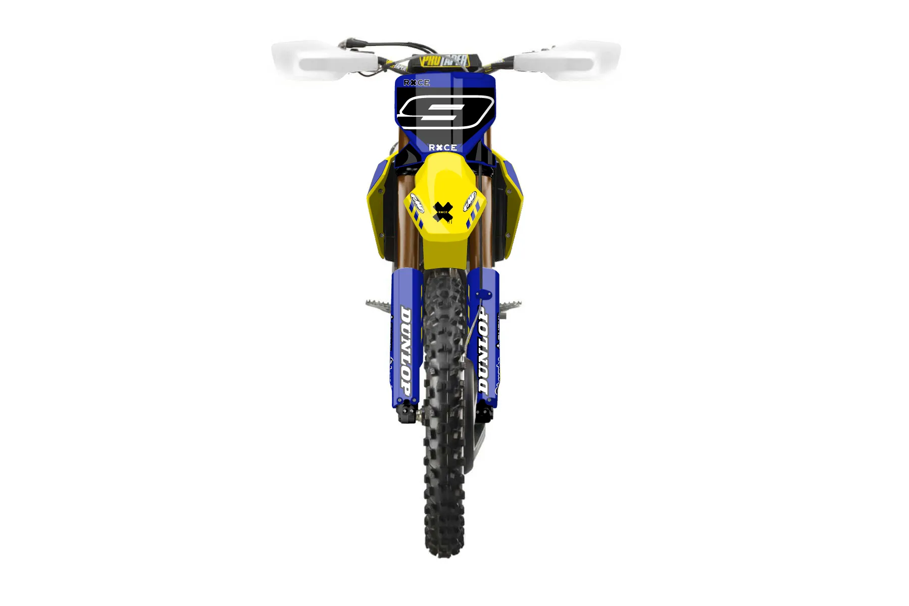 «Retro» — готовый комплект графики серии Maverick для Husqvarna Enduro Graphic Kit Husqvarna FX 350 2019. В комплекте: графика на бак и боковые облицовки, крылья (переднее и заднее), передний щиток, номерные таблички, защита вилки. Материал: ПВХ-винил 80 мкр с холодной ламинацией 300 мкр, общая толщина 380 мкр; покрытие глянцевое или матовое на выбор. Устойчив к UV-излучению, воде, бензину и мойке высокого давления. Клей акриловый на сольвентной основе — постоянный, для гибких пластиков. На простых поверхностях монтируется без нагрева; для сложных изгибов рекомендуем фен. Этот пресет можно заказать как есть или взять за основу в конструкторе: поменять цвета, добавить стартовый номер и свой бренд. Производство — 3–5 рабочих дней, доставка по России СДЭКом или Почтой, по СНГ — курьерскими службами.