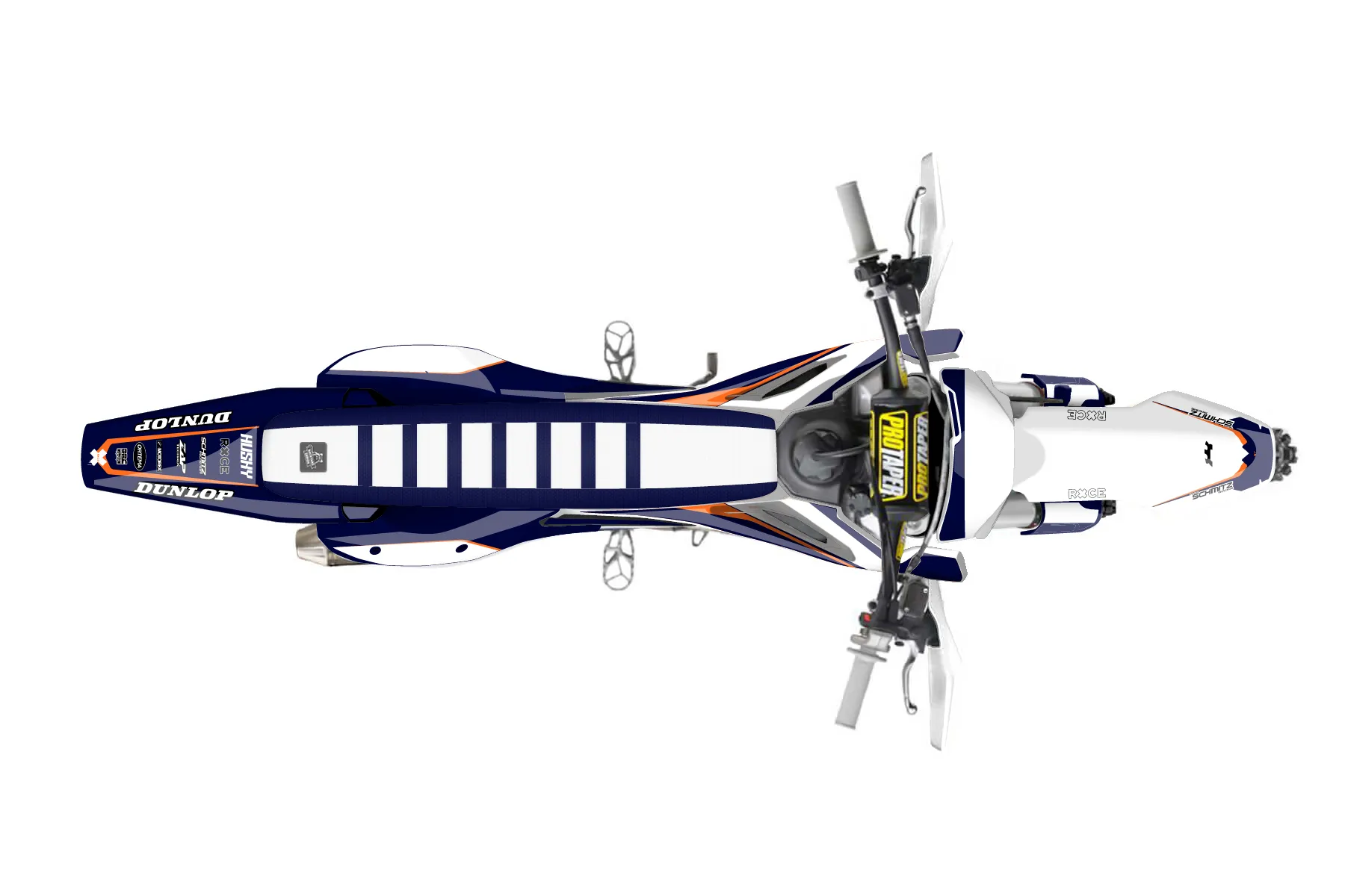«Concepts» — готовый комплект графики серии Flow для Husqvarna Enduro Graphic Kit Husqvarna FX 350 2023. В комплекте: графика на бак и боковые облицовки, крылья (переднее и заднее), передний щиток, номерные таблички, защита вилки. Материал: ПВХ-винил 80 мкр с холодной ламинацией 300 мкр, общая толщина 380 мкр; покрытие глянцевое или матовое на выбор. Устойчив к UV-излучению, воде, бензину и мойке высокого давления. Клей акриловый на сольвентной основе — постоянный, для гибких пластиков. На простых поверхностях монтируется без нагрева; для сложных изгибов рекомендуем фен. Этот пресет можно заказать как есть или взять за основу в конструкторе: поменять цвета, добавить стартовый номер и свой бренд. Производство — 3–5 рабочих дней, доставка по России СДЭКом или Почтой, по СНГ — курьерскими службами.