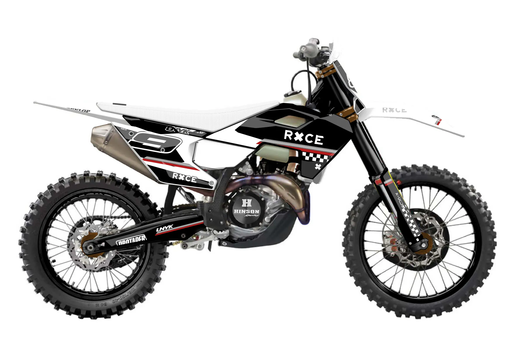 «Direction» — готовый комплект графики серии Maverick для Husqvarna Enduro Graphic Kit Husqvarna FX 450 2016. В комплекте: графика на бак и боковые облицовки, крылья (переднее и заднее), передний щиток, номерные таблички, защита вилки. Материал: ПВХ-винил 80 мкр с холодной ламинацией 300 мкр, общая толщина 380 мкр; покрытие глянцевое или матовое на выбор. Устойчив к UV-излучению, воде, бензину и мойке высокого давления. Клей акриловый на сольвентной основе — постоянный, для гибких пластиков. На простых поверхностях монтируется без нагрева; для сложных изгибов рекомендуем фен. Этот пресет можно заказать как есть или взять за основу в конструкторе: поменять цвета, добавить стартовый номер и свой бренд. Производство — 3–5 рабочих дней, доставка по России СДЭКом или Почтой, по СНГ — курьерскими службами.