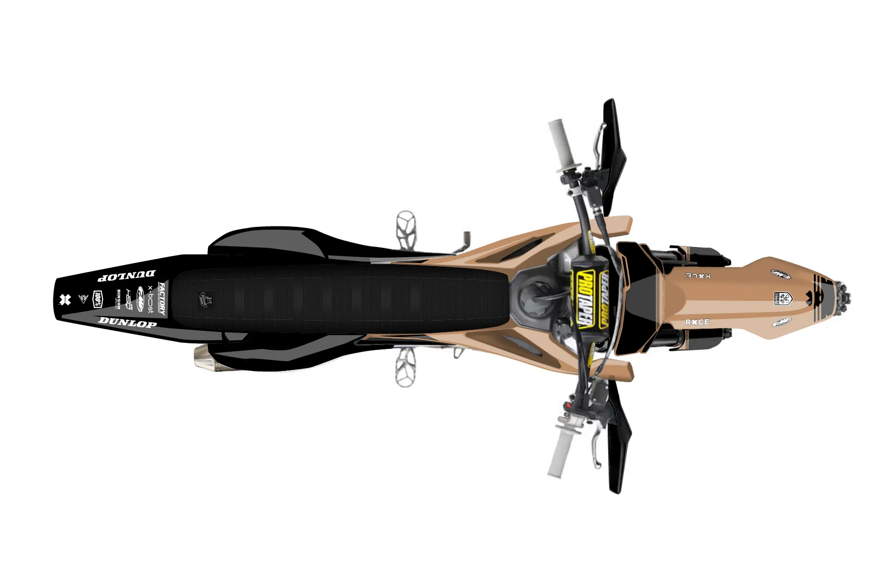 «Trademark» — готовый комплект графики серии Untucked для Husqvarna Enduro Graphic Kit Husqvarna FX 450 2016. В комплекте: графика на бак и боковые облицовки, крылья (переднее и заднее), передний щиток, номерные таблички, защита вилки. Материал: ПВХ-винил 80 мкр с холодной ламинацией 300 мкр, общая толщина 380 мкр; покрытие глянцевое или матовое на выбор. Устойчив к UV-излучению, воде, бензину и мойке высокого давления. Клей акриловый на сольвентной основе — постоянный, для гибких пластиков. На простых поверхностях монтируется без нагрева; для сложных изгибов рекомендуем фен. Этот пресет можно заказать как есть или взять за основу в конструкторе: поменять цвета, добавить стартовый номер и свой бренд. Производство — 3–5 рабочих дней, доставка по России СДЭКом или Почтой, по СНГ — курьерскими службами.
