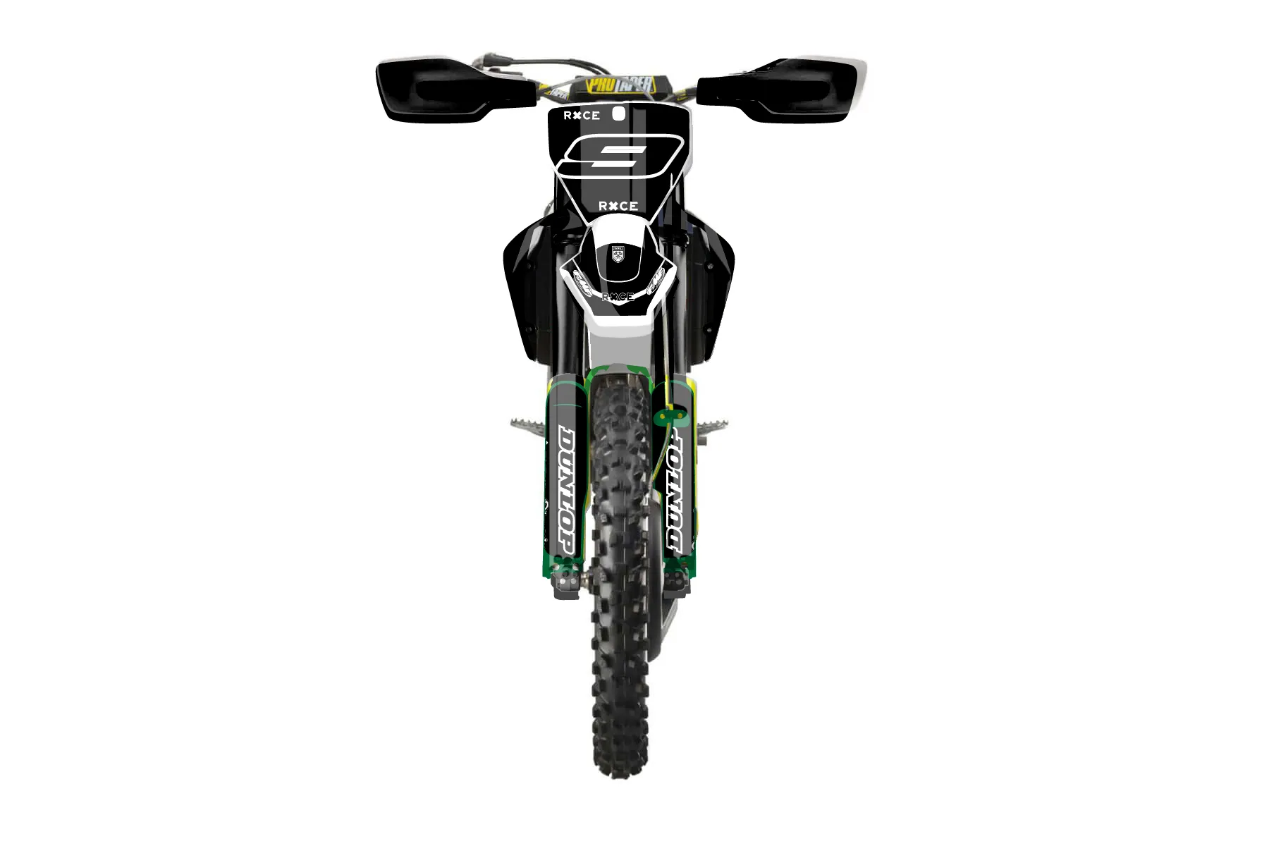 «Visonary» — готовый комплект графики серии Flow для Husqvarna Enduro Graphic Kit Husqvarna FX 450 2019. В комплекте: графика на бак и боковые облицовки, крылья (переднее и заднее), передний щиток, номерные таблички, защита вилки. Материал: ПВХ-винил 80 мкр с холодной ламинацией 300 мкр, общая толщина 380 мкр; покрытие глянцевое или матовое на выбор. Устойчив к UV-излучению, воде, бензину и мойке высокого давления. Клей акриловый на сольвентной основе — постоянный, для гибких пластиков. На простых поверхностях монтируется без нагрева; для сложных изгибов рекомендуем фен. Этот пресет можно заказать как есть или взять за основу в конструкторе: поменять цвета, добавить стартовый номер и свой бренд. Производство — 3–5 рабочих дней, доставка по России СДЭКом или Почтой, по СНГ — курьерскими службами.