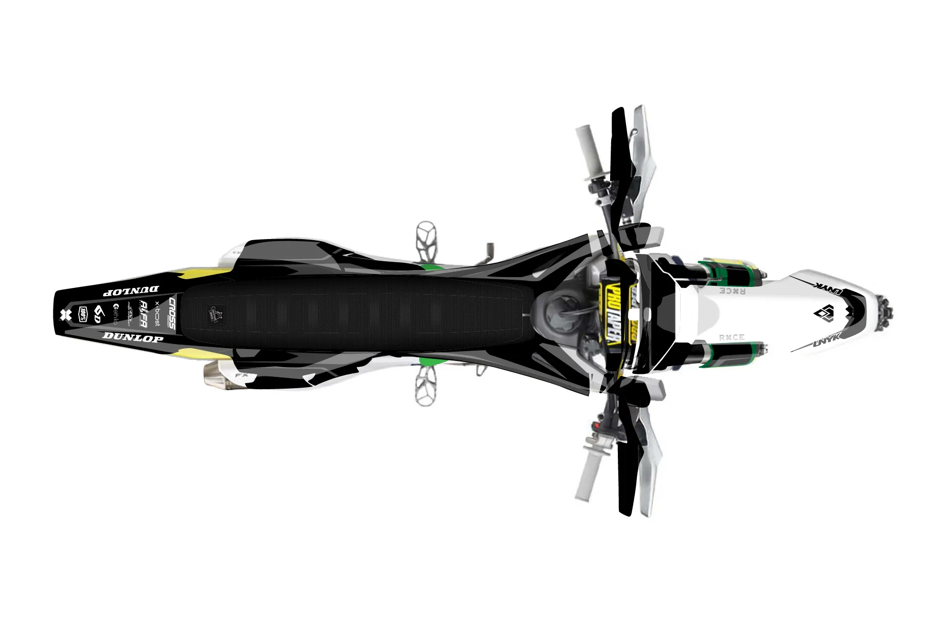 «Whip» — готовый комплект графики серии Flow для Husqvarna Enduro Graphic Kit Husqvarna FX 450 2019. В комплекте: графика на бак и боковые облицовки, крылья (переднее и заднее), передний щиток, номерные таблички, защита вилки. Материал: ПВХ-винил 80 мкр с холодной ламинацией 300 мкр, общая толщина 380 мкр; покрытие глянцевое или матовое на выбор. Устойчив к UV-излучению, воде, бензину и мойке высокого давления. Клей акриловый на сольвентной основе — постоянный, для гибких пластиков. На простых поверхностях монтируется без нагрева; для сложных изгибов рекомендуем фен. Этот пресет можно заказать как есть или взять за основу в конструкторе: поменять цвета, добавить стартовый номер и свой бренд. Производство — 3–5 рабочих дней, доставка по России СДЭКом или Почтой, по СНГ — курьерскими службами.