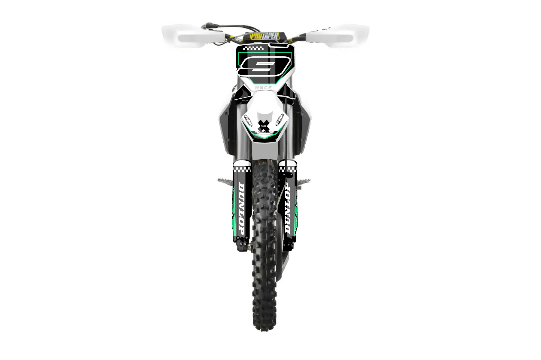 «Drizzle» — готовый комплект графики серии Staple для Husqvarna Enduro Graphic Kit Husqvarna FX 450 2019. В комплекте: графика на бак и боковые облицовки, крылья (переднее и заднее), передний щиток, номерные таблички, защита вилки. Материал: ПВХ-винил 80 мкр с холодной ламинацией 300 мкр, общая толщина 380 мкр; покрытие глянцевое или матовое на выбор. Устойчив к UV-излучению, воде, бензину и мойке высокого давления. Клей акриловый на сольвентной основе — постоянный, для гибких пластиков. На простых поверхностях монтируется без нагрева; для сложных изгибов рекомендуем фен. Этот пресет можно заказать как есть или взять за основу в конструкторе: поменять цвета, добавить стартовый номер и свой бренд. Производство — 3–5 рабочих дней, доставка по России СДЭКом или Почтой, по СНГ — курьерскими службами.