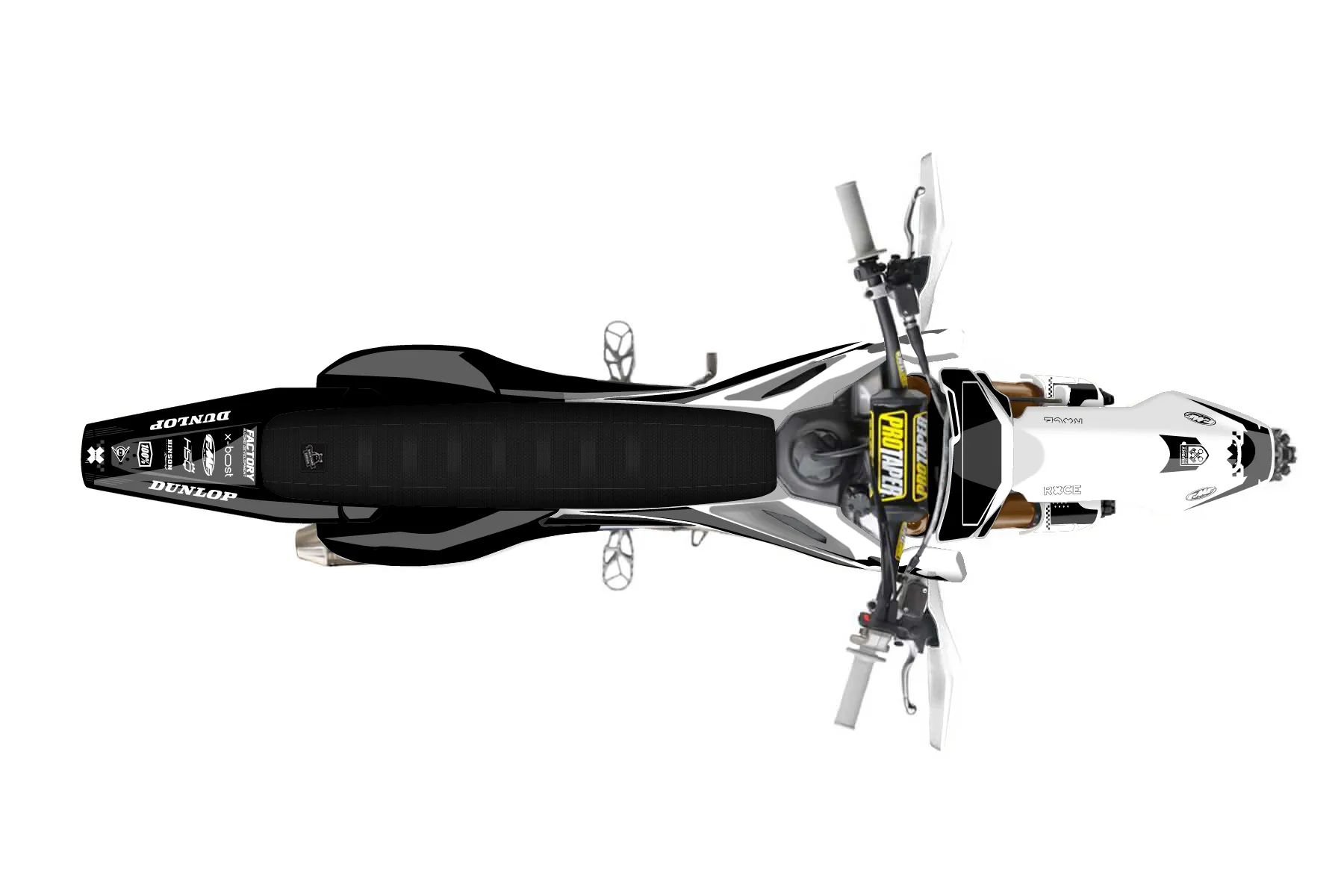 «Tilled» — готовый комплект графики серии Staple для Husqvarna Enduro Graphic Kit Husqvarna FX 450 2019. В комплекте: графика на бак и боковые облицовки, крылья (переднее и заднее), передний щиток, номерные таблички, защита вилки. Материал: ПВХ-винил 80 мкр с холодной ламинацией 300 мкр, общая толщина 380 мкр; покрытие глянцевое или матовое на выбор. Устойчив к UV-излучению, воде, бензину и мойке высокого давления. Клей акриловый на сольвентной основе — постоянный, для гибких пластиков. На простых поверхностях монтируется без нагрева; для сложных изгибов рекомендуем фен. Этот пресет можно заказать как есть или взять за основу в конструкторе: поменять цвета, добавить стартовый номер и свой бренд. Производство — 3–5 рабочих дней, доставка по России СДЭКом или Почтой, по СНГ — курьерскими службами.