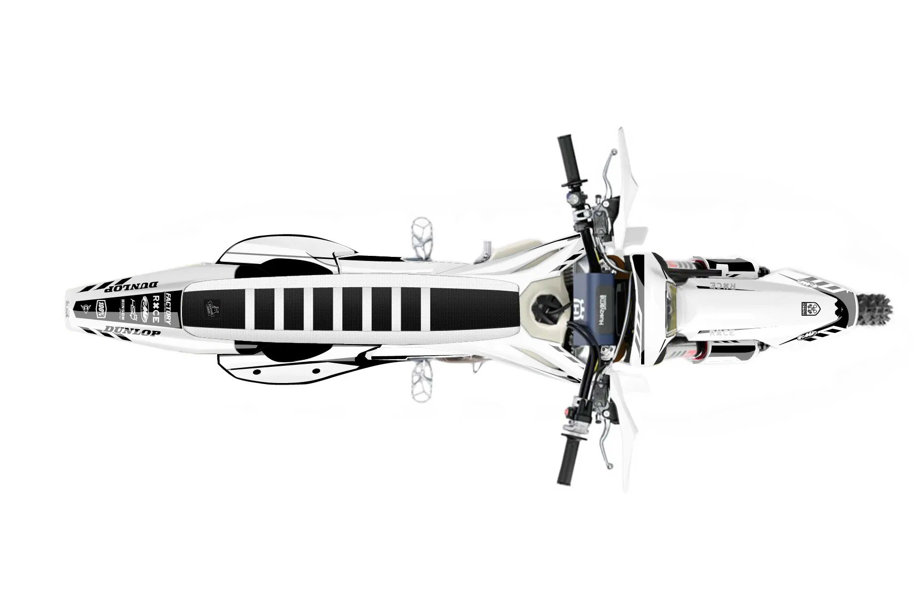 «Slice» — готовый комплект графики серии Maverick для Husqvarna Enduro Graphic Kit Husqvarna TE 125 2017. В комплекте: графика на бак и боковые облицовки, крылья (переднее и заднее), передний щиток, номерные таблички, защита вилки. Материал: ПВХ-винил 80 мкр с холодной ламинацией 300 мкр, общая толщина 380 мкр; покрытие глянцевое или матовое на выбор. Устойчив к UV-излучению, воде, бензину и мойке высокого давления. Клей акриловый на сольвентной основе — постоянный, для гибких пластиков. На простых поверхностях монтируется без нагрева; для сложных изгибов рекомендуем фен. Этот пресет можно заказать как есть или взять за основу в конструкторе: поменять цвета, добавить стартовый номер и свой бренд. Производство — 3–5 рабочих дней, доставка по России СДЭКом или Почтой, по СНГ — курьерскими службами.