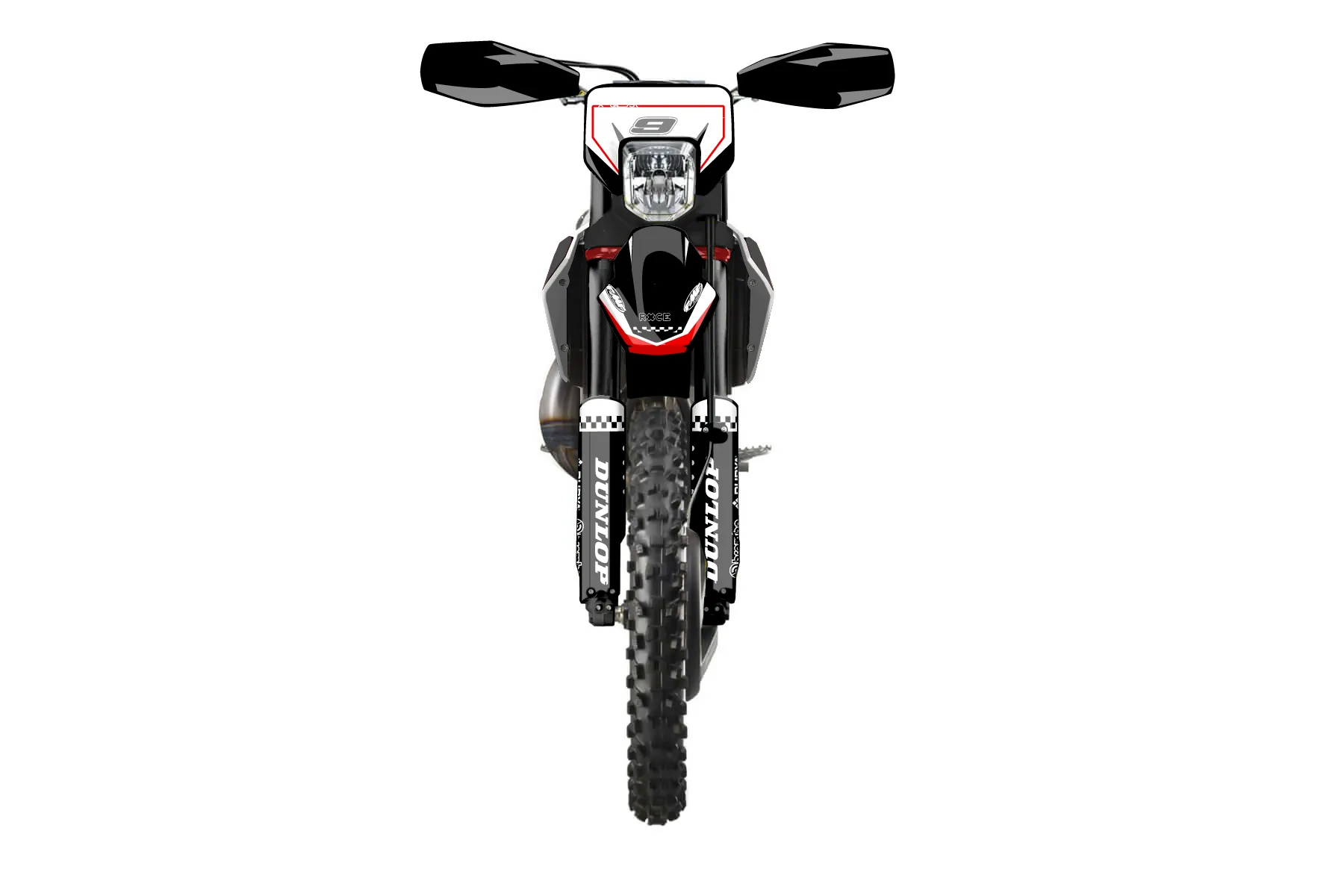 «Rage» — готовый комплект графики серии Staple для Husqvarna Enduro Graphic Kit Husqvarna TE 125 2017. В комплекте: графика на бак и боковые облицовки, крылья (переднее и заднее), передний щиток, номерные таблички, защита вилки. Материал: ПВХ-винил 80 мкр с холодной ламинацией 300 мкр, общая толщина 380 мкр; покрытие глянцевое или матовое на выбор. Устойчив к UV-излучению, воде, бензину и мойке высокого давления. Клей акриловый на сольвентной основе — постоянный, для гибких пластиков. На простых поверхностях монтируется без нагрева; для сложных изгибов рекомендуем фен. Этот пресет можно заказать как есть или взять за основу в конструкторе: поменять цвета, добавить стартовый номер и свой бренд. Производство — 3–5 рабочих дней, доставка по России СДЭКом или Почтой, по СНГ — курьерскими службами.