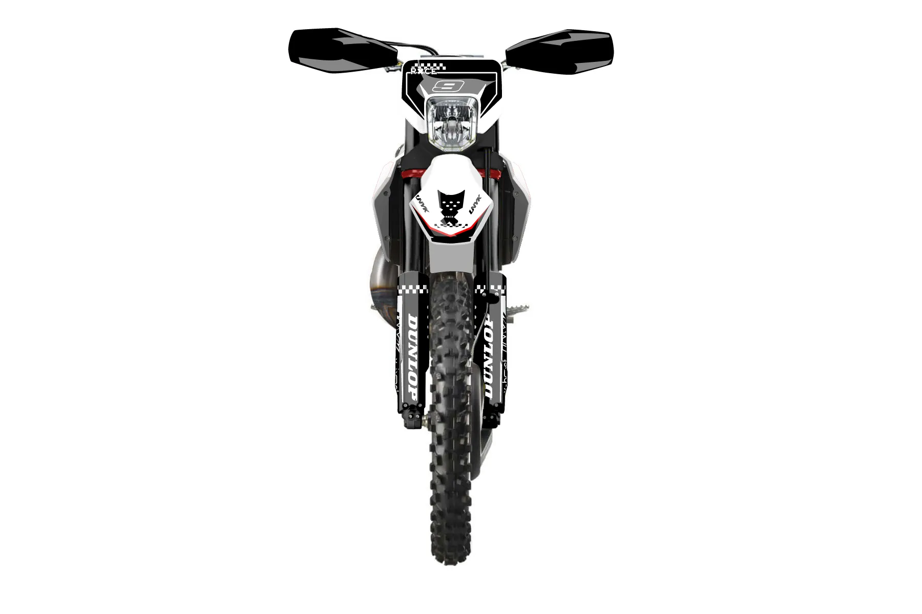 «Spirit» — готовый комплект графики серии Staple для Husqvarna Enduro Graphic Kit Husqvarna TE 125 2017. В комплекте: графика на бак и боковые облицовки, крылья (переднее и заднее), передний щиток, номерные таблички, защита вилки. Материал: ПВХ-винил 80 мкр с холодной ламинацией 300 мкр, общая толщина 380 мкр; покрытие глянцевое или матовое на выбор. Устойчив к UV-излучению, воде, бензину и мойке высокого давления. Клей акриловый на сольвентной основе — постоянный, для гибких пластиков. На простых поверхностях монтируется без нагрева; для сложных изгибов рекомендуем фен. Этот пресет можно заказать как есть или взять за основу в конструкторе: поменять цвета, добавить стартовый номер и свой бренд. Производство — 3–5 рабочих дней, доставка по России СДЭКом или Почтой, по СНГ — курьерскими службами.