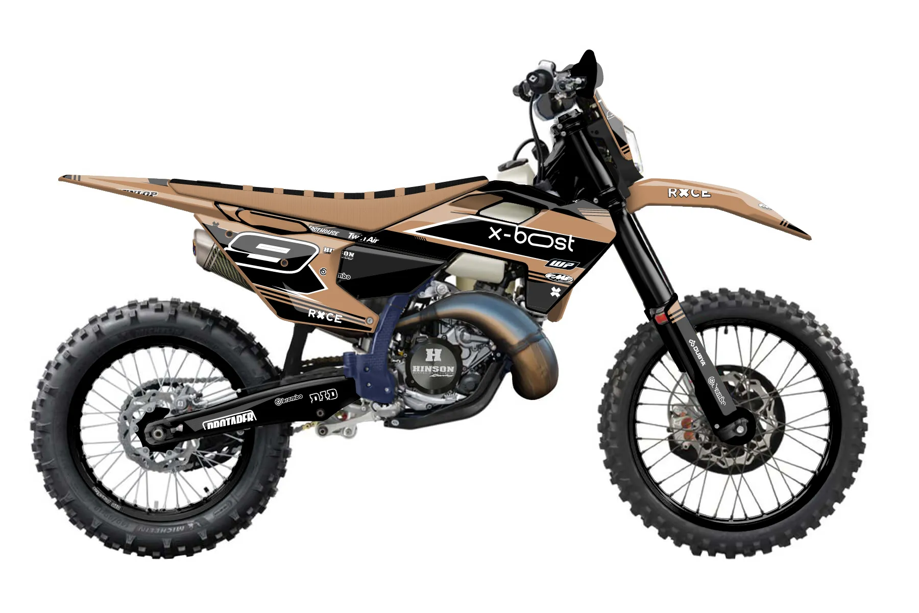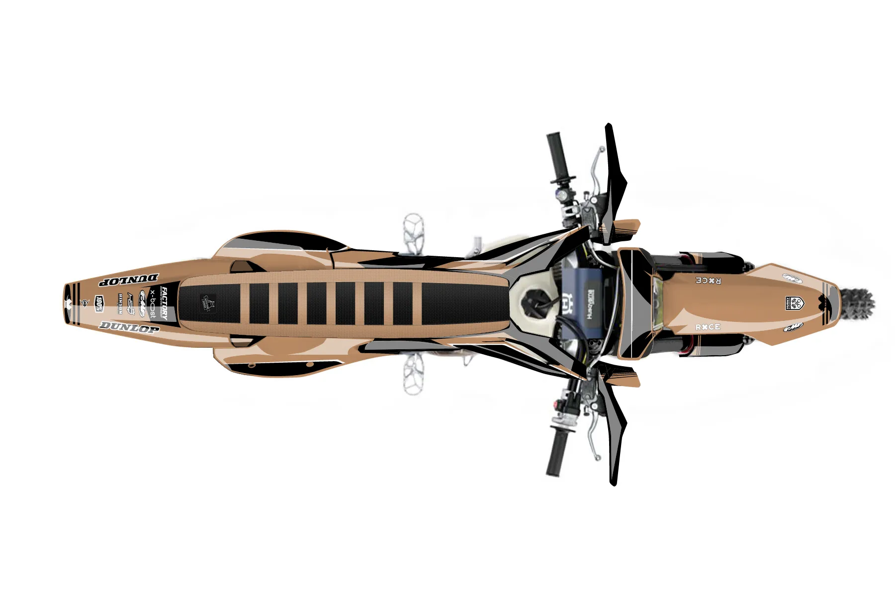 «Dew» — готовый комплект графики серии Untucked для Husqvarna Enduro Graphic Kit Husqvarna TE 125 2017. В комплекте: графика на бак и боковые облицовки, крылья (переднее и заднее), передний щиток, номерные таблички, защита вилки. Материал: ПВХ-винил 80 мкр с холодной ламинацией 300 мкр, общая толщина 380 мкр; покрытие глянцевое или матовое на выбор. Устойчив к UV-излучению, воде, бензину и мойке высокого давления. Клей акриловый на сольвентной основе — постоянный, для гибких пластиков. На простых поверхностях монтируется без нагрева; для сложных изгибов рекомендуем фен. Этот пресет можно заказать как есть или взять за основу в конструкторе: поменять цвета, добавить стартовый номер и свой бренд. Производство — 3–5 рабочих дней, доставка по России СДЭКом или Почтой, по СНГ — курьерскими службами.