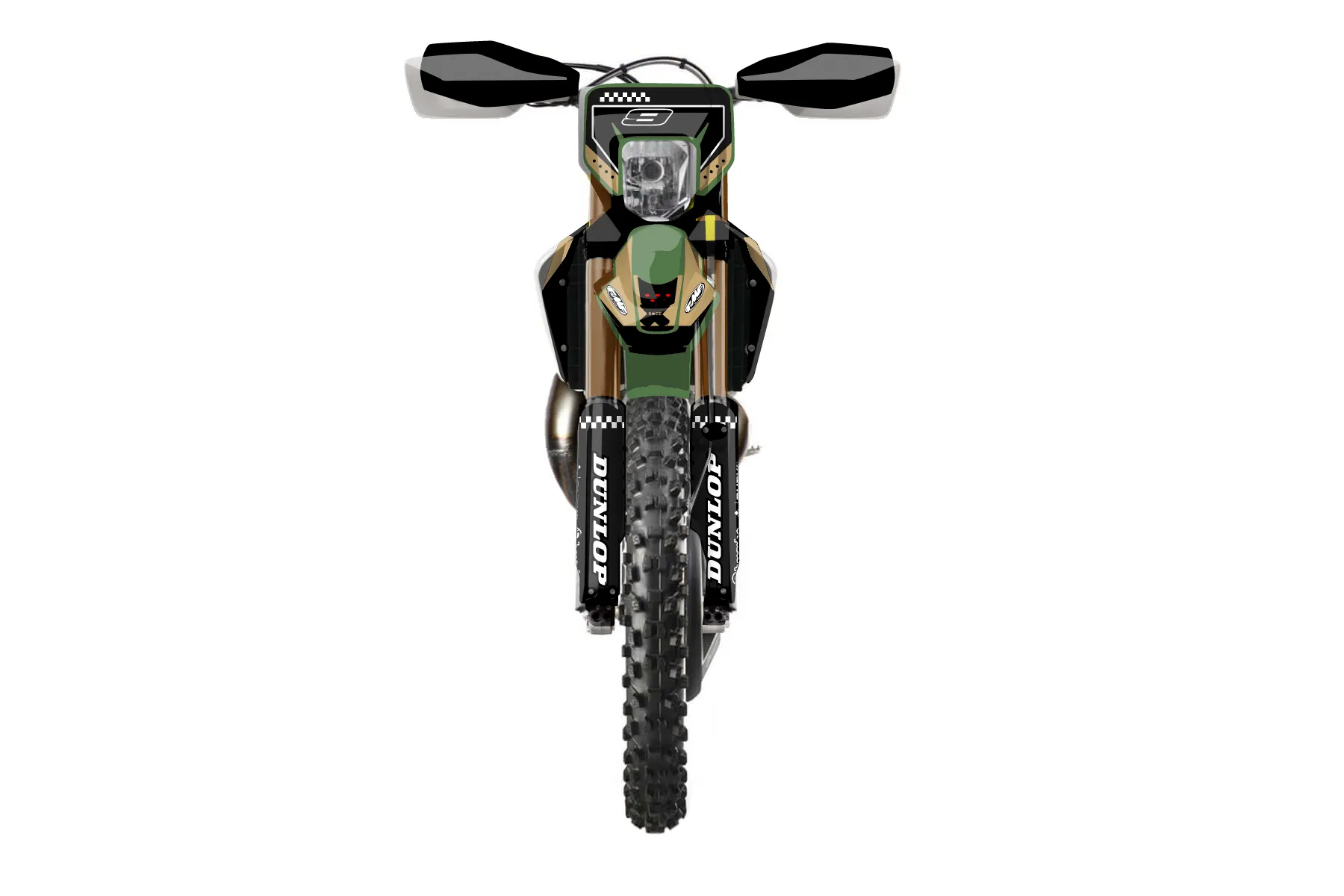 «Stamp» — готовый комплект графики серии Staple для Husqvarna Enduro Graphic Kit Husqvarna TE 125 2020. В комплекте: графика на бак и боковые облицовки, крылья (переднее и заднее), передний щиток, номерные таблички, защита вилки. Материал: ПВХ-винил 80 мкр с холодной ламинацией 300 мкр, общая толщина 380 мкр; покрытие глянцевое или матовое на выбор. Устойчив к UV-излучению, воде, бензину и мойке высокого давления. Клей акриловый на сольвентной основе — постоянный, для гибких пластиков. На простых поверхностях монтируется без нагрева; для сложных изгибов рекомендуем фен. Этот пресет можно заказать как есть или взять за основу в конструкторе: поменять цвета, добавить стартовый номер и свой бренд. Производство — 3–5 рабочих дней, доставка по России СДЭКом или Почтой, по СНГ — курьерскими службами.
