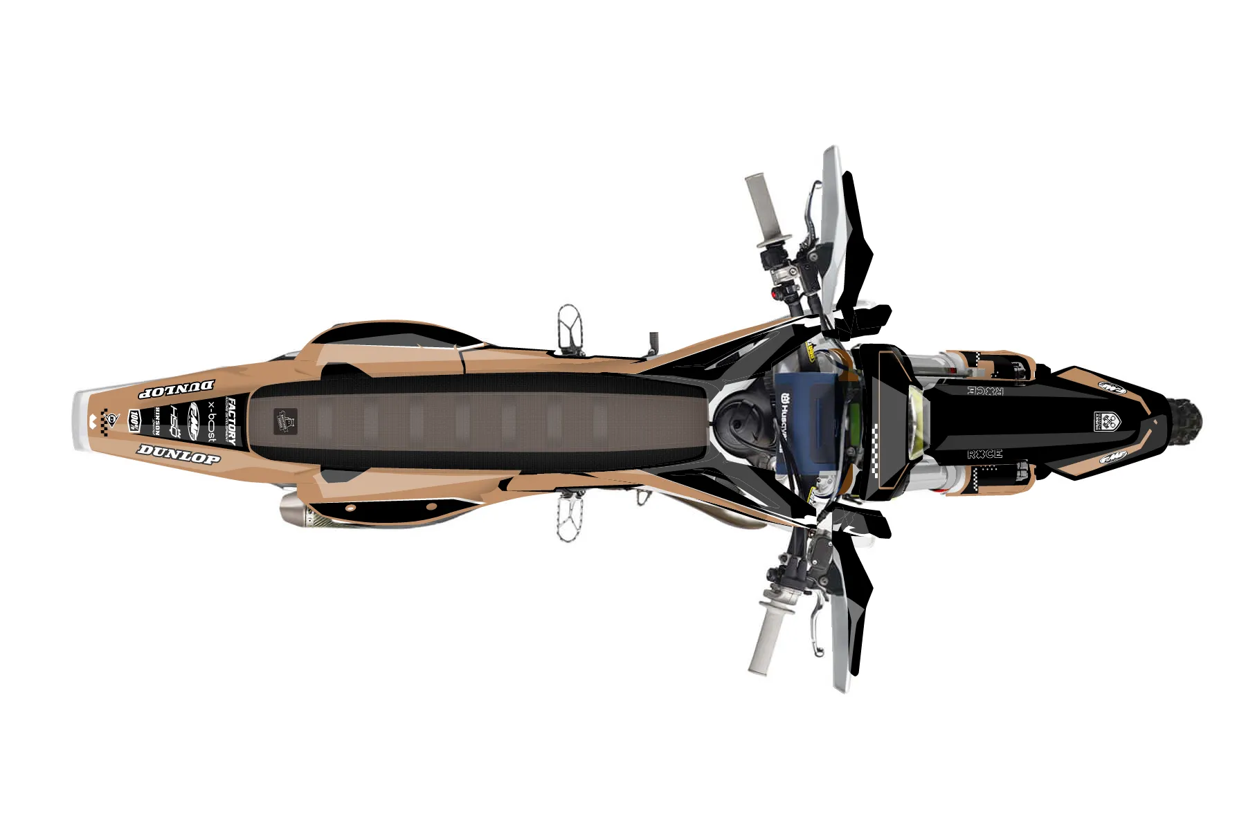 «Trait» — готовый комплект графики серии Staple для Husqvarna Enduro Graphic Kit Husqvarna TE 125 2020. В комплекте: графика на бак и боковые облицовки, крылья (переднее и заднее), передний щиток, номерные таблички, защита вилки. Материал: ПВХ-винил 80 мкр с холодной ламинацией 300 мкр, общая толщина 380 мкр; покрытие глянцевое или матовое на выбор. Устойчив к UV-излучению, воде, бензину и мойке высокого давления. Клей акриловый на сольвентной основе — постоянный, для гибких пластиков. На простых поверхностях монтируется без нагрева; для сложных изгибов рекомендуем фен. Этот пресет можно заказать как есть или взять за основу в конструкторе: поменять цвета, добавить стартовый номер и свой бренд. Производство — 3–5 рабочих дней, доставка по России СДЭКом или Почтой, по СНГ — курьерскими службами.