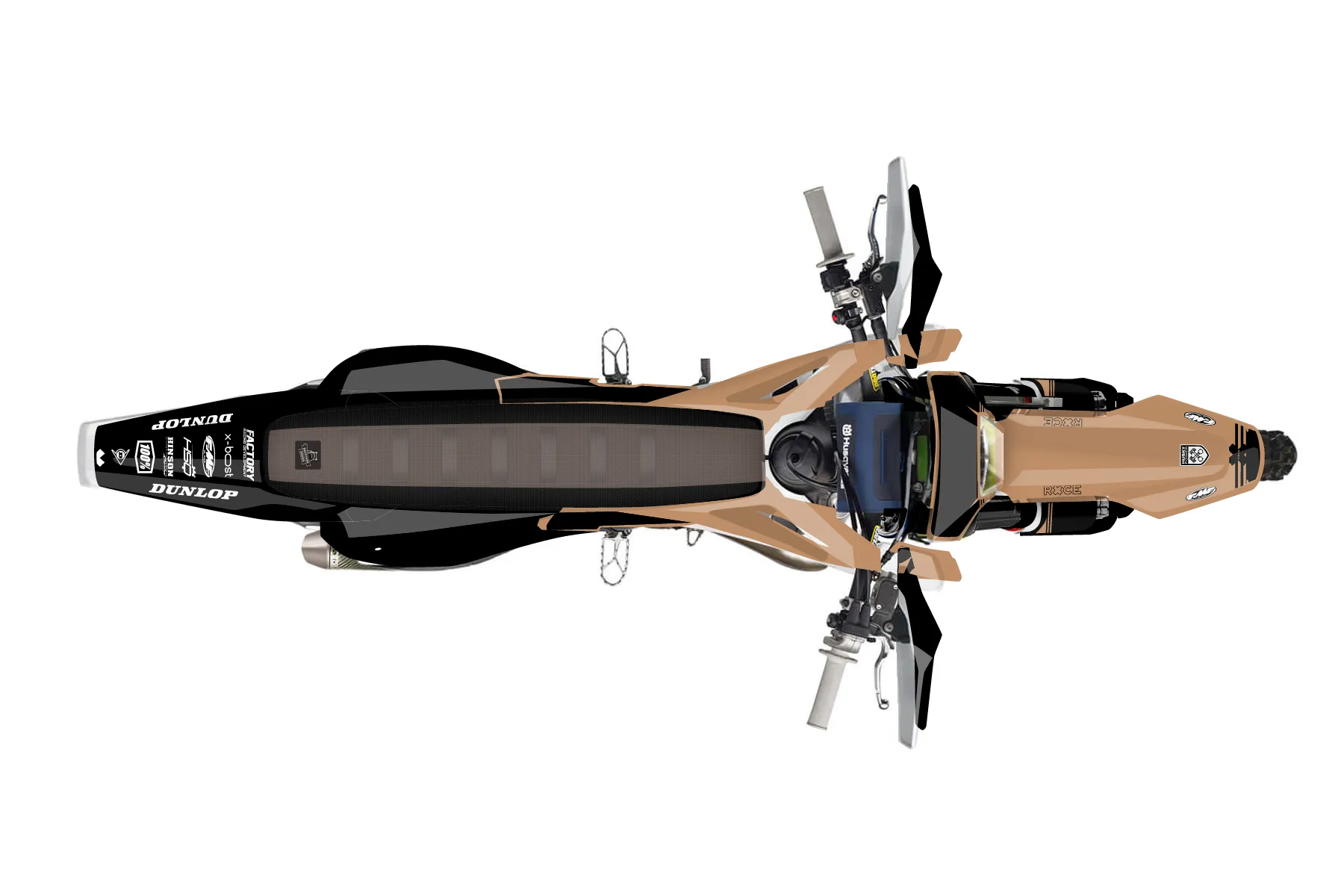 «Trademark» — готовый комплект графики серии Untucked для Husqvarna Enduro Graphic Kit Husqvarna TE 125 2020. В комплекте: графика на бак и боковые облицовки, крылья (переднее и заднее), передний щиток, номерные таблички, защита вилки. Материал: ПВХ-винил 80 мкр с холодной ламинацией 300 мкр, общая толщина 380 мкр; покрытие глянцевое или матовое на выбор. Устойчив к UV-излучению, воде, бензину и мойке высокого давления. Клей акриловый на сольвентной основе — постоянный, для гибких пластиков. На простых поверхностях монтируется без нагрева; для сложных изгибов рекомендуем фен. Этот пресет можно заказать как есть или взять за основу в конструкторе: поменять цвета, добавить стартовый номер и свой бренд. Производство — 3–5 рабочих дней, доставка по России СДЭКом или Почтой, по СНГ — курьерскими службами.