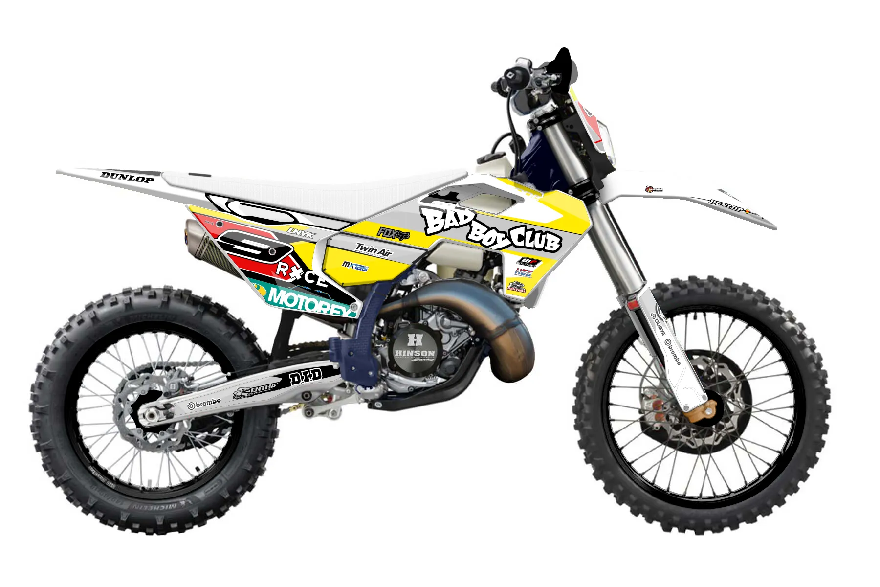 «CustomDesign» — готовый комплект графики серии Flow для Husqvarna Enduro Graphic Kit Husqvarna TE 125 2024. В комплекте: графика на бак и боковые облицовки, крылья (переднее и заднее), передний щиток, номерные таблички, защита вилки. Материал: ПВХ-винил 80 мкр с холодной ламинацией 300 мкр, общая толщина 380 мкр; покрытие глянцевое или матовое на выбор. Устойчив к UV-излучению, воде, бензину и мойке высокого давления. Клей акриловый на сольвентной основе — постоянный, для гибких пластиков. На простых поверхностях монтируется без нагрева; для сложных изгибов рекомендуем фен. Этот пресет можно заказать как есть или взять за основу в конструкторе: поменять цвета, добавить стартовый номер и свой бренд. Производство — 3–5 рабочих дней, доставка по России СДЭКом или Почтой, по СНГ — курьерскими службами.