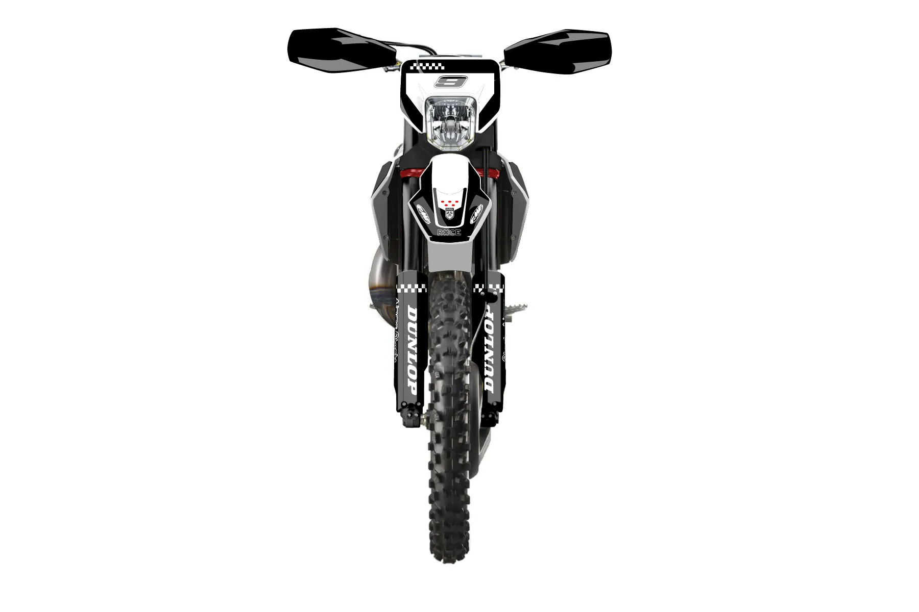 «Type» — готовый комплект графики серии Staple для Husqvarna Enduro Graphic Kit Husqvarna TE 125 2024. В комплекте: графика на бак и боковые облицовки, крылья (переднее и заднее), передний щиток, номерные таблички, защита вилки. Материал: ПВХ-винил 80 мкр с холодной ламинацией 300 мкр, общая толщина 380 мкр; покрытие глянцевое или матовое на выбор. Устойчив к UV-излучению, воде, бензину и мойке высокого давления. Клей акриловый на сольвентной основе — постоянный, для гибких пластиков. На простых поверхностях монтируется без нагрева; для сложных изгибов рекомендуем фен. Этот пресет можно заказать как есть или взять за основу в конструкторе: поменять цвета, добавить стартовый номер и свой бренд. Производство — 3–5 рабочих дней, доставка по России СДЭКом или Почтой, по СНГ — курьерскими службами.