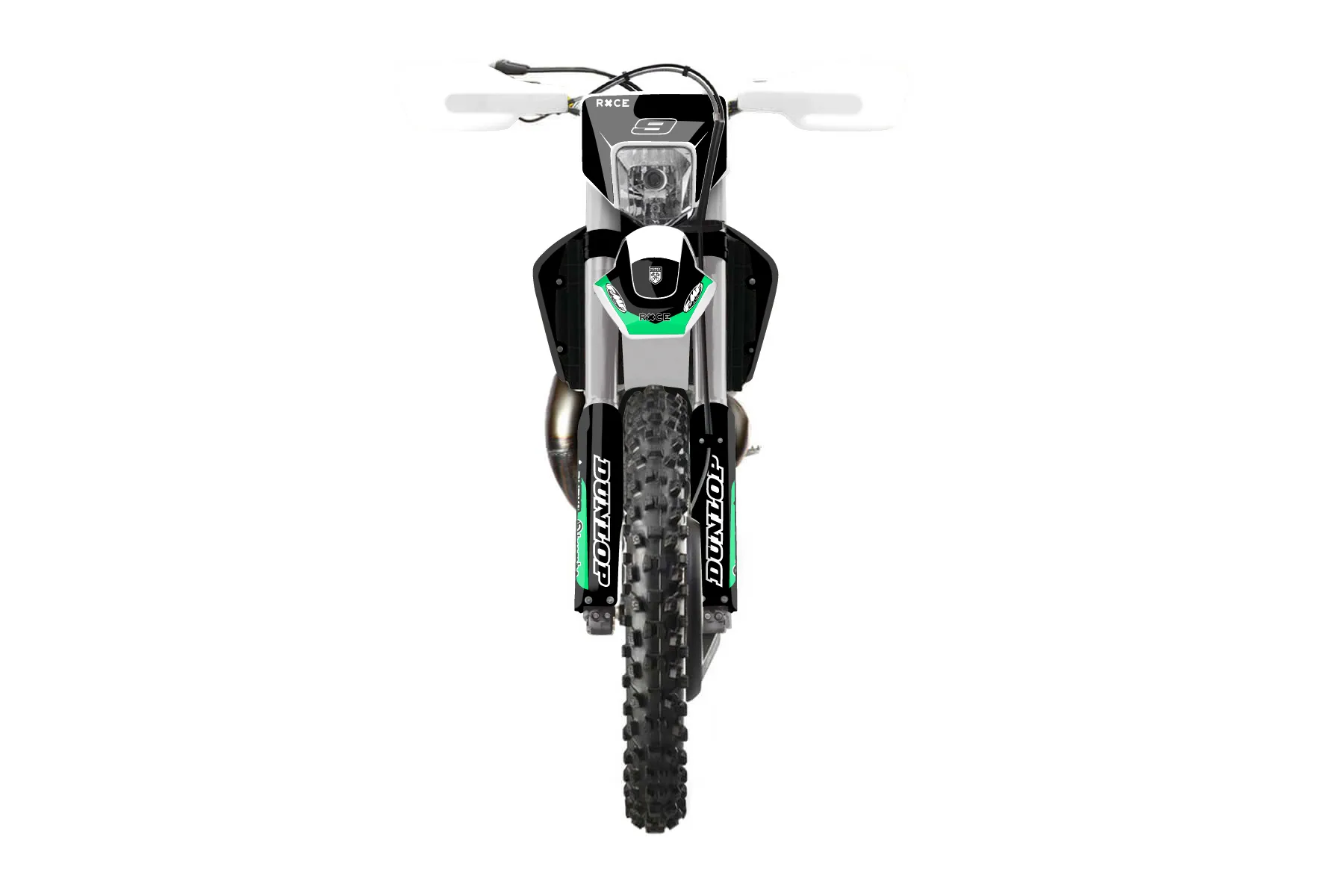 «Startup» — готовый комплект графики серии Flow для Husqvarna Enduro Graphic Kit Husqvarna TE 150 2017. В комплекте: графика на бак и боковые облицовки, крылья (переднее и заднее), передний щиток, номерные таблички, защита вилки. Материал: ПВХ-винил 80 мкр с холодной ламинацией 300 мкр, общая толщина 380 мкр; покрытие глянцевое или матовое на выбор. Устойчив к UV-излучению, воде, бензину и мойке высокого давления. Клей акриловый на сольвентной основе — постоянный, для гибких пластиков. На простых поверхностях монтируется без нагрева; для сложных изгибов рекомендуем фен. Этот пресет можно заказать как есть или взять за основу в конструкторе: поменять цвета, добавить стартовый номер и свой бренд. Производство — 3–5 рабочих дней, доставка по России СДЭКом или Почтой, по СНГ — курьерскими службами.
