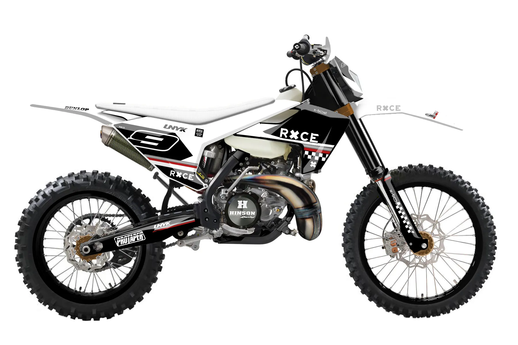 «Direction» — готовый комплект графики серии Maverick для Husqvarna Enduro Graphic Kit Husqvarna TE 150 2017. В комплекте: графика на бак и боковые облицовки, крылья (переднее и заднее), передний щиток, номерные таблички, защита вилки. Материал: ПВХ-винил 80 мкр с холодной ламинацией 300 мкр, общая толщина 380 мкр; покрытие глянцевое или матовое на выбор. Устойчив к UV-излучению, воде, бензину и мойке высокого давления. Клей акриловый на сольвентной основе — постоянный, для гибких пластиков. На простых поверхностях монтируется без нагрева; для сложных изгибов рекомендуем фен. Этот пресет можно заказать как есть или взять за основу в конструкторе: поменять цвета, добавить стартовый номер и свой бренд. Производство — 3–5 рабочих дней, доставка по России СДЭКом или Почтой, по СНГ — курьерскими службами.