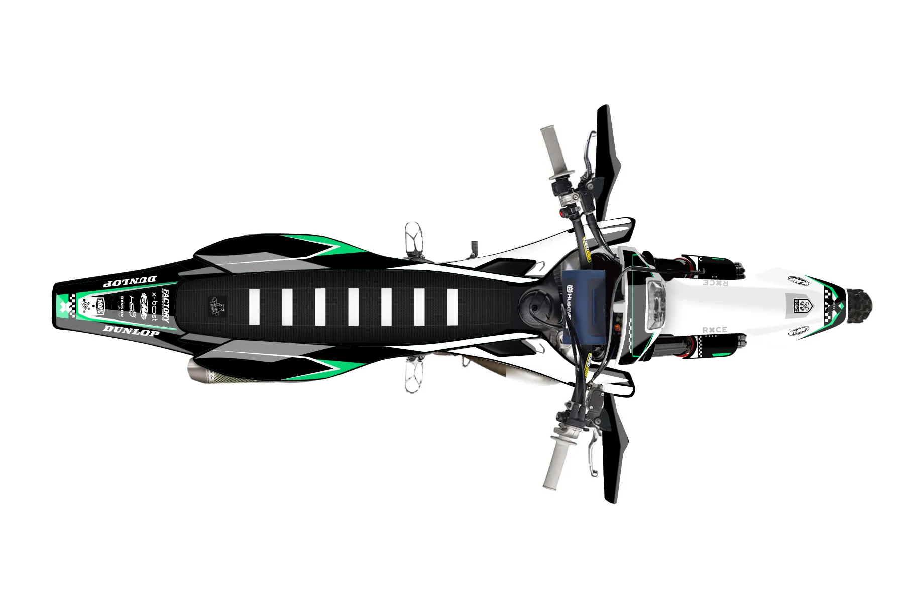 «Class» — готовый комплект графики серии Staple для Husqvarna Enduro Graphic Kit Husqvarna TE 150 2017. В комплекте: графика на бак и боковые облицовки, крылья (переднее и заднее), передний щиток, номерные таблички, защита вилки. Материал: ПВХ-винил 80 мкр с холодной ламинацией 300 мкр, общая толщина 380 мкр; покрытие глянцевое или матовое на выбор. Устойчив к UV-излучению, воде, бензину и мойке высокого давления. Клей акриловый на сольвентной основе — постоянный, для гибких пластиков. На простых поверхностях монтируется без нагрева; для сложных изгибов рекомендуем фен. Этот пресет можно заказать как есть или взять за основу в конструкторе: поменять цвета, добавить стартовый номер и свой бренд. Производство — 3–5 рабочих дней, доставка по России СДЭКом или Почтой, по СНГ — курьерскими службами.