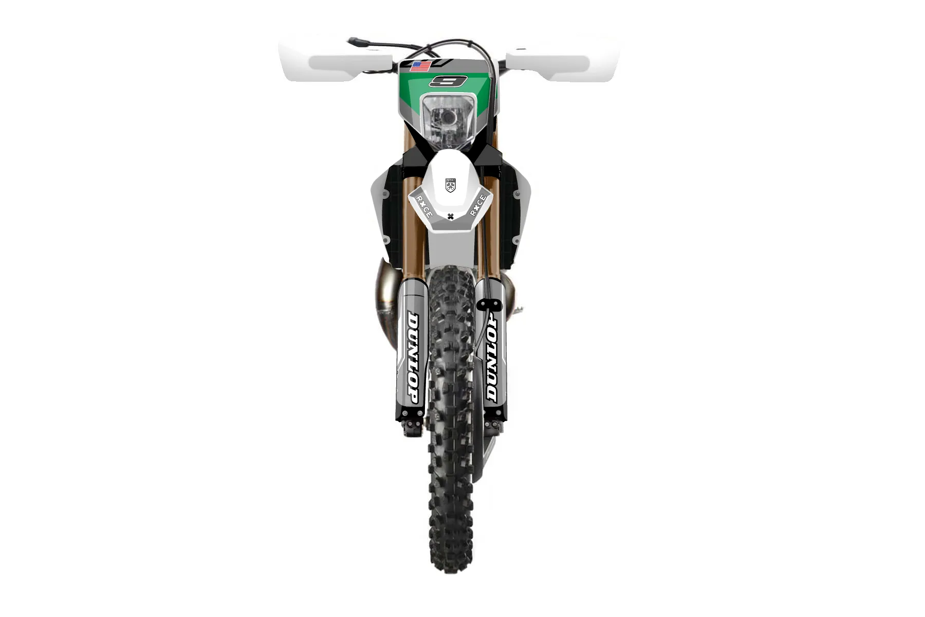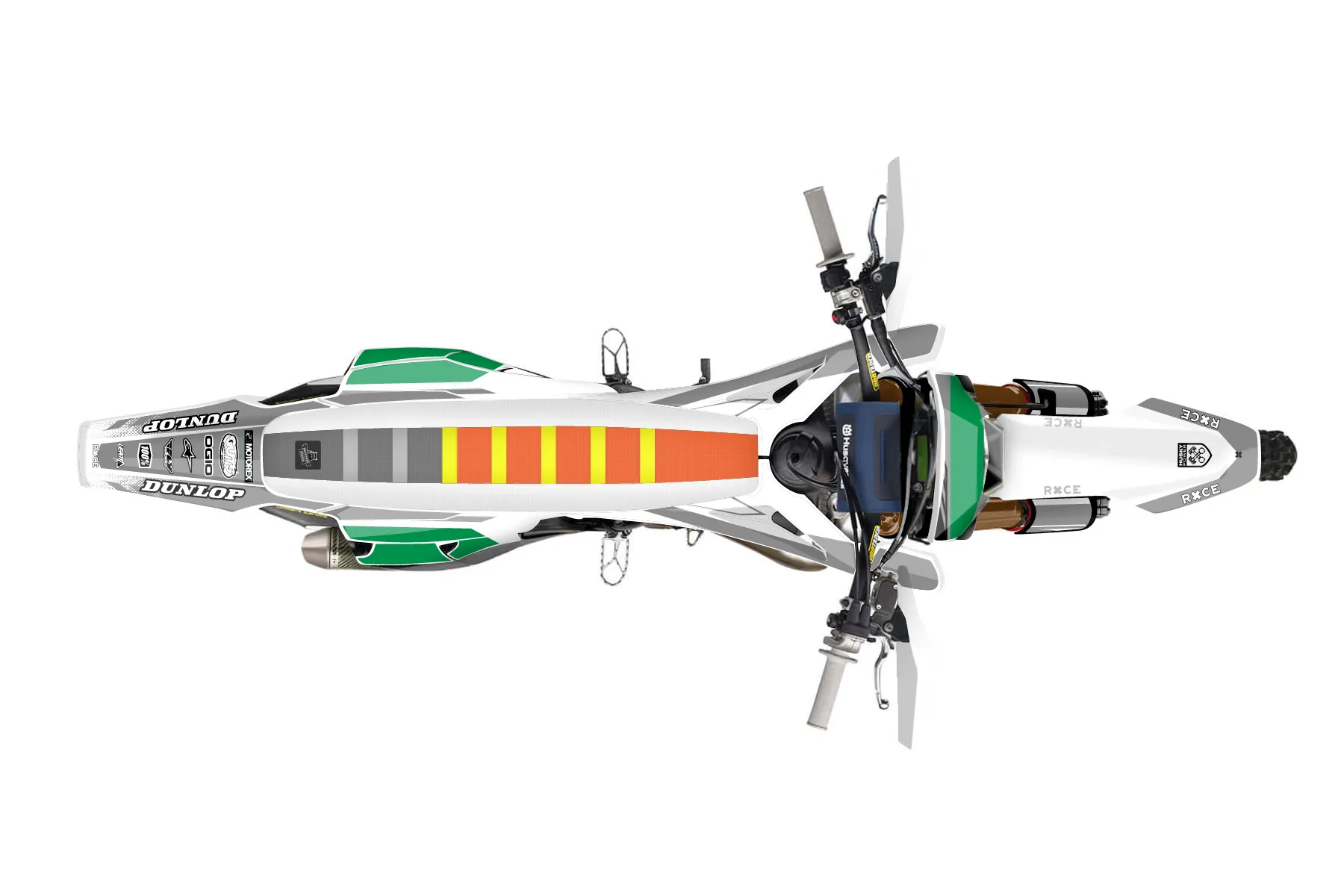 «TE150 » — готовый комплект графики серии Maverick для Husqvarna Enduro Graphic Kit Husqvarna TE 150 2020. В комплекте: графика на бак и боковые облицовки, крылья (переднее и заднее), передний щиток, номерные таблички, защита вилки. Материал: ПВХ-винил 80 мкр с холодной ламинацией 300 мкр, общая толщина 380 мкр; покрытие глянцевое или матовое на выбор. Устойчив к UV-излучению, воде, бензину и мойке высокого давления. Клей акриловый на сольвентной основе — постоянный, для гибких пластиков. На простых поверхностях монтируется без нагрева; для сложных изгибов рекомендуем фен. Этот пресет можно заказать как есть или взять за основу в конструкторе: поменять цвета, добавить стартовый номер и свой бренд. Производство — 3–5 рабочих дней, доставка по России СДЭКом или Почтой, по СНГ — курьерскими службами.