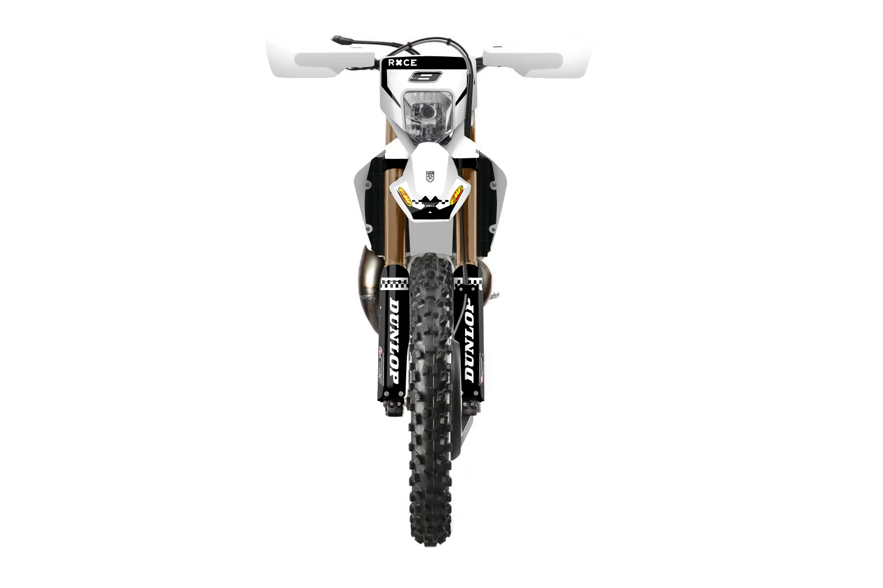 «Draft» — готовый комплект графики серии Staple для Husqvarna Enduro Graphic Kit Husqvarna TE 150 2020. В комплекте: графика на бак и боковые облицовки, крылья (переднее и заднее), передний щиток, номерные таблички, защита вилки. Материал: ПВХ-винил 80 мкр с холодной ламинацией 300 мкр, общая толщина 380 мкр; покрытие глянцевое или матовое на выбор. Устойчив к UV-излучению, воде, бензину и мойке высокого давления. Клей акриловый на сольвентной основе — постоянный, для гибких пластиков. На простых поверхностях монтируется без нагрева; для сложных изгибов рекомендуем фен. Этот пресет можно заказать как есть или взять за основу в конструкторе: поменять цвета, добавить стартовый номер и свой бренд. Производство — 3–5 рабочих дней, доставка по России СДЭКом или Почтой, по СНГ — курьерскими службами.