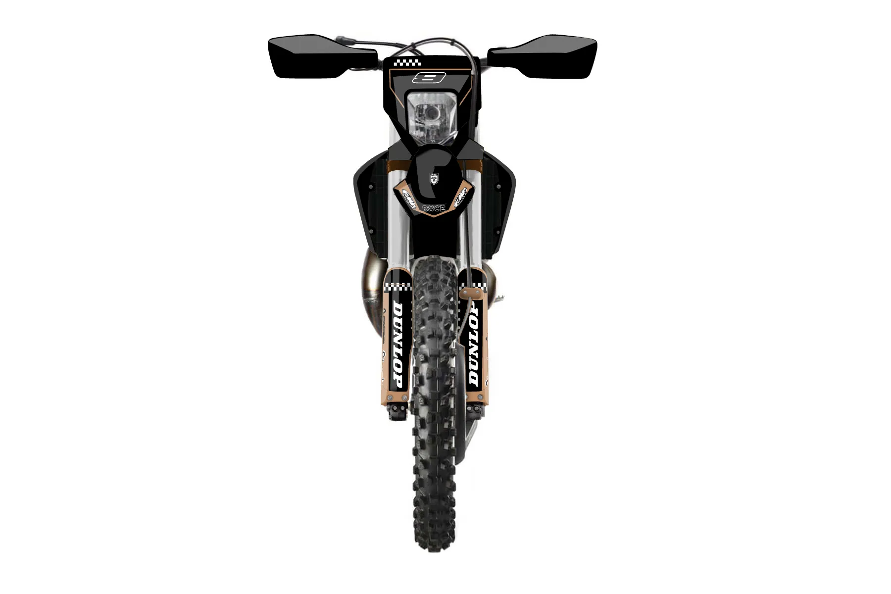 «Trait» — готовый комплект графики серии Staple для Husqvarna Enduro Graphic Kit Husqvarna TE 150 2020. В комплекте: графика на бак и боковые облицовки, крылья (переднее и заднее), передний щиток, номерные таблички, защита вилки. Материал: ПВХ-винил 80 мкр с холодной ламинацией 300 мкр, общая толщина 380 мкр; покрытие глянцевое или матовое на выбор. Устойчив к UV-излучению, воде, бензину и мойке высокого давления. Клей акриловый на сольвентной основе — постоянный, для гибких пластиков. На простых поверхностях монтируется без нагрева; для сложных изгибов рекомендуем фен. Этот пресет можно заказать как есть или взять за основу в конструкторе: поменять цвета, добавить стартовый номер и свой бренд. Производство — 3–5 рабочих дней, доставка по России СДЭКом или Почтой, по СНГ — курьерскими службами.