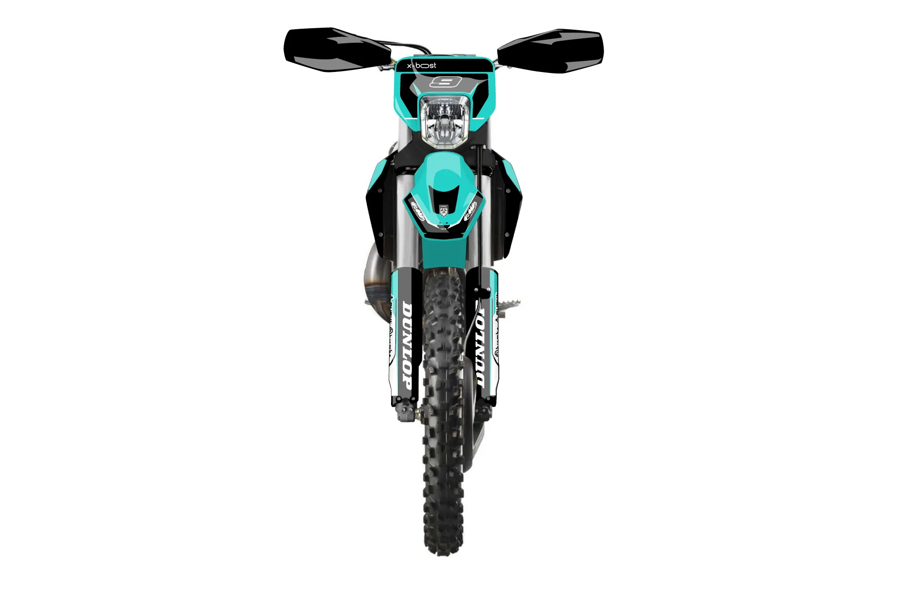 «Vector» — готовый комплект графики серии Flow для Husqvarna Enduro Graphic Kit Husqvarna TE 150 2024. В комплекте: графика на бак и боковые облицовки, крылья (переднее и заднее), передний щиток, номерные таблички, защита вилки. Материал: ПВХ-винил 80 мкр с холодной ламинацией 300 мкр, общая толщина 380 мкр; покрытие глянцевое или матовое на выбор. Устойчив к UV-излучению, воде, бензину и мойке высокого давления. Клей акриловый на сольвентной основе — постоянный, для гибких пластиков. На простых поверхностях монтируется без нагрева; для сложных изгибов рекомендуем фен. Этот пресет можно заказать как есть или взять за основу в конструкторе: поменять цвета, добавить стартовый номер и свой бренд. Производство — 3–5 рабочих дней, доставка по России СДЭКом или Почтой, по СНГ — курьерскими службами.