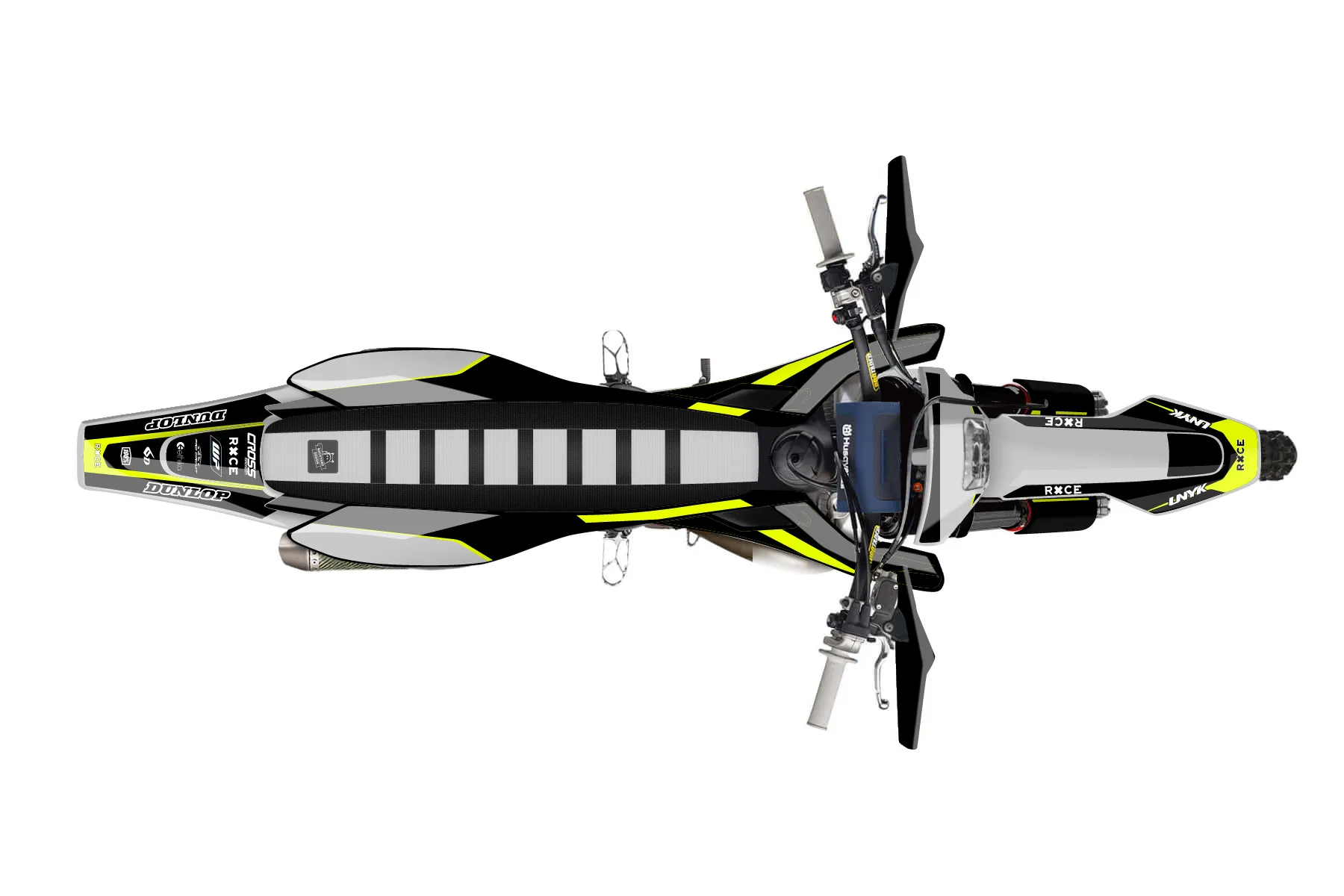 «Cyber Pirate» — готовый комплект графики серии Flow для Husqvarna Enduro Graphic Kit Husqvarna TE 250 2017. В комплекте: графика на бак и боковые облицовки, крылья (переднее и заднее), передний щиток, номерные таблички, защита вилки. Материал: ПВХ-винил 80 мкр с холодной ламинацией 300 мкр, общая толщина 380 мкр; покрытие глянцевое или матовое на выбор. Устойчив к UV-излучению, воде, бензину и мойке высокого давления. Клей акриловый на сольвентной основе — постоянный, для гибких пластиков. На простых поверхностях монтируется без нагрева; для сложных изгибов рекомендуем фен. Этот пресет можно заказать как есть или взять за основу в конструкторе: поменять цвета, добавить стартовый номер и свой бренд. Производство — 3–5 рабочих дней, доставка по России СДЭКом или Почтой, по СНГ — курьерскими службами.