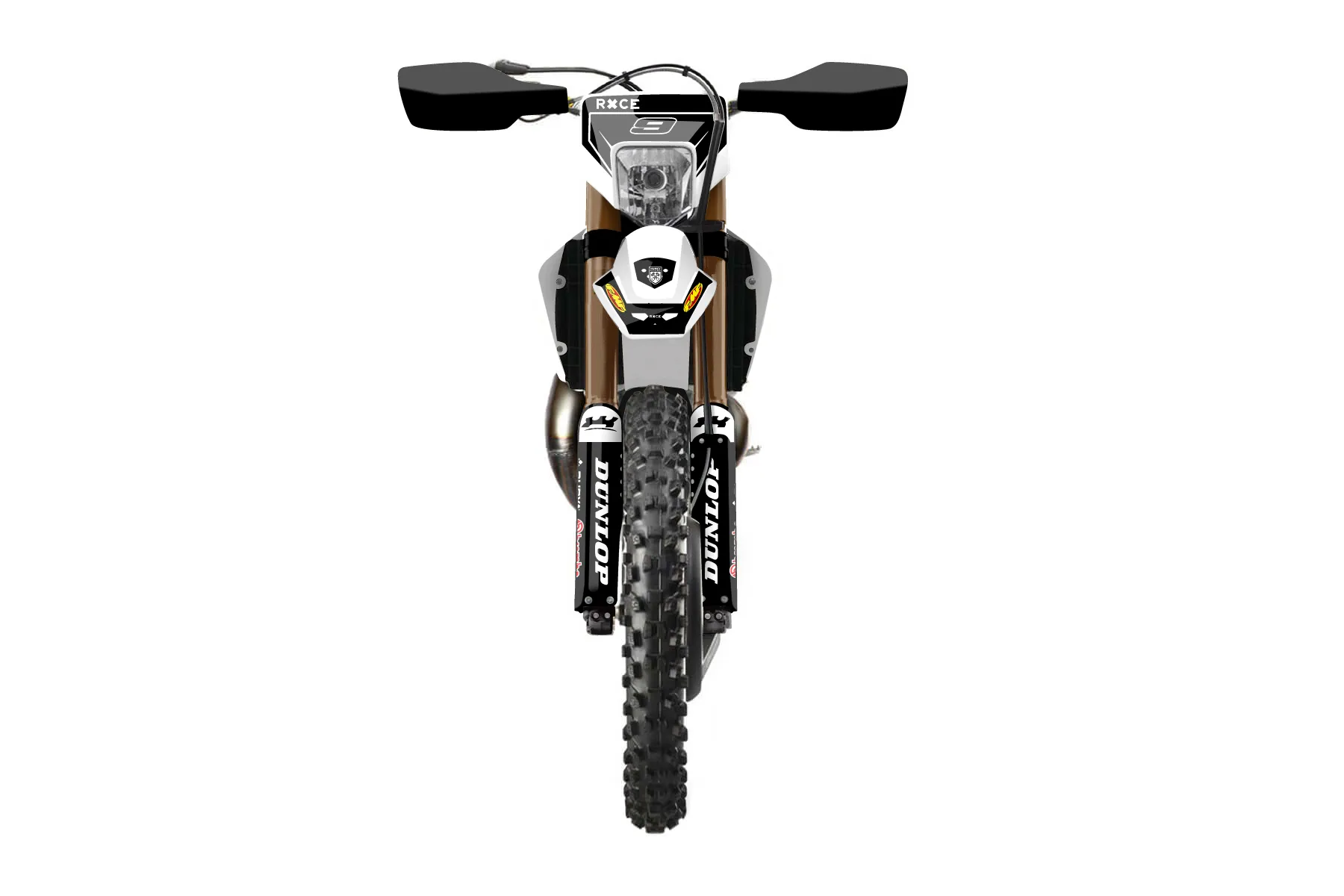 «Ghost» — готовый комплект графики серии Staple для Husqvarna Enduro Graphic Kit Husqvarna TE 250 2017. В комплекте: графика на бак и боковые облицовки, крылья (переднее и заднее), передний щиток, номерные таблички, защита вилки. Материал: ПВХ-винил 80 мкр с холодной ламинацией 300 мкр, общая толщина 380 мкр; покрытие глянцевое или матовое на выбор. Устойчив к UV-излучению, воде, бензину и мойке высокого давления. Клей акриловый на сольвентной основе — постоянный, для гибких пластиков. На простых поверхностях монтируется без нагрева; для сложных изгибов рекомендуем фен. Этот пресет можно заказать как есть или взять за основу в конструкторе: поменять цвета, добавить стартовый номер и свой бренд. Производство — 3–5 рабочих дней, доставка по России СДЭКом или Почтой, по СНГ — курьерскими службами.