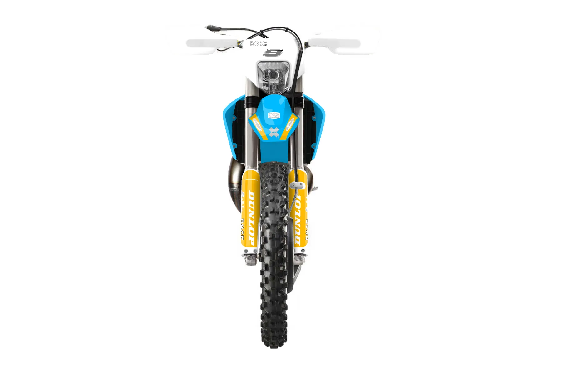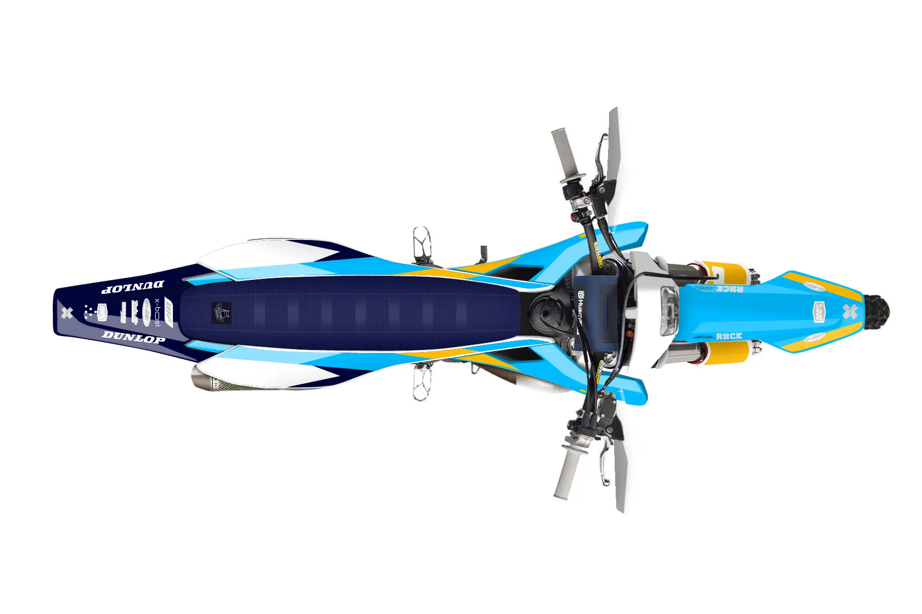 «TE 250i Blue and Yellow» — готовый комплект графики серии Staple для Husqvarna Enduro Graphic Kit Husqvarna TE 250 2017. В комплекте: графика на бак и боковые облицовки, крылья (переднее и заднее), передний щиток, номерные таблички, защита вилки. Материал: ПВХ-винил 80 мкр с холодной ламинацией 300 мкр, общая толщина 380 мкр; покрытие глянцевое или матовое на выбор. Устойчив к UV-излучению, воде, бензину и мойке высокого давления. Клей акриловый на сольвентной основе — постоянный, для гибких пластиков. На простых поверхностях монтируется без нагрева; для сложных изгибов рекомендуем фен. Этот пресет можно заказать как есть или взять за основу в конструкторе: поменять цвета, добавить стартовый номер и свой бренд. Производство — 3–5 рабочих дней, доставка по России СДЭКом или Почтой, по СНГ — курьерскими службами.