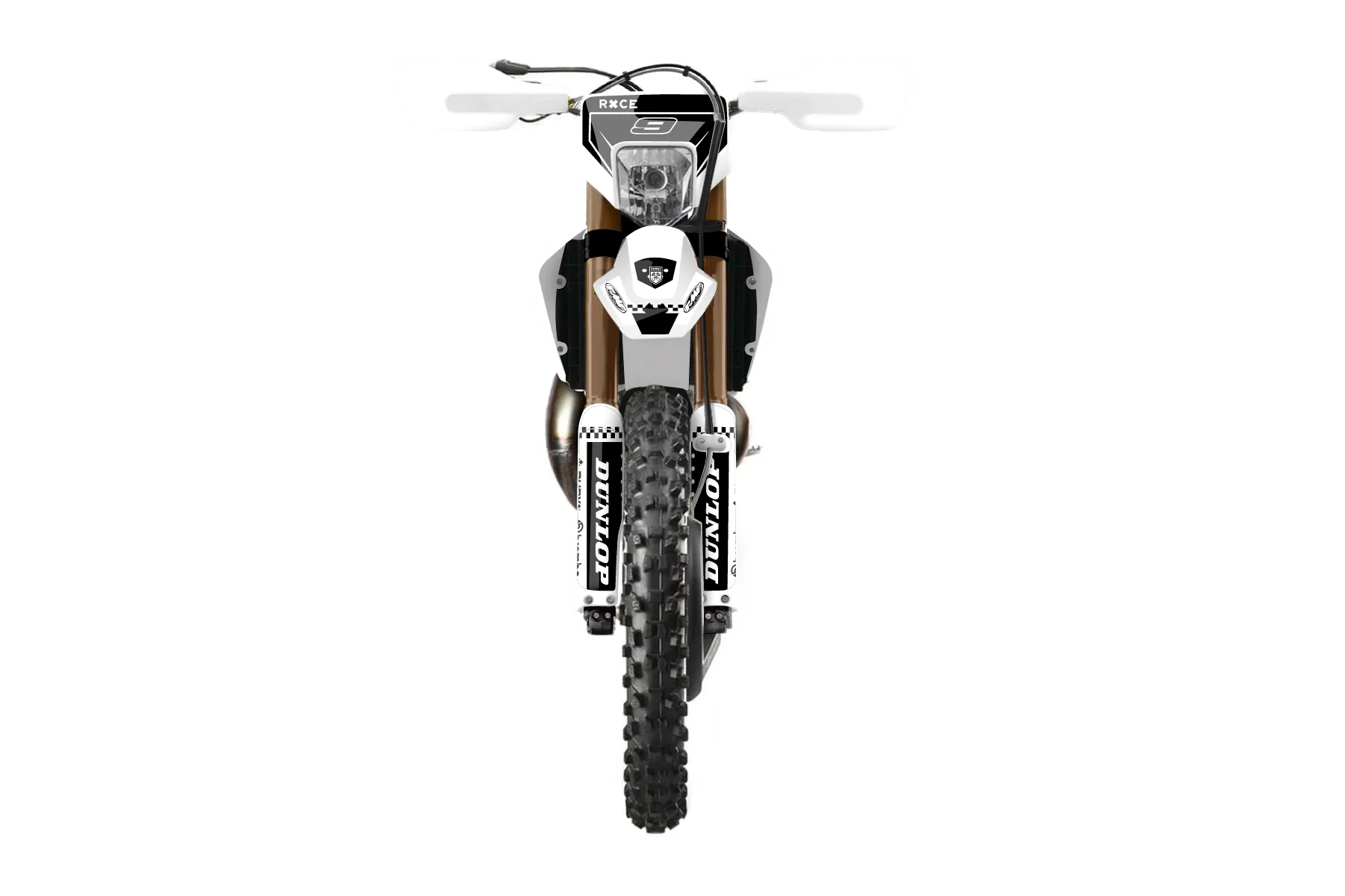 «Tilled» — готовый комплект графики серии Staple для Husqvarna Enduro Graphic Kit Husqvarna TE 250 2017. В комплекте: графика на бак и боковые облицовки, крылья (переднее и заднее), передний щиток, номерные таблички, защита вилки. Материал: ПВХ-винил 80 мкр с холодной ламинацией 300 мкр, общая толщина 380 мкр; покрытие глянцевое или матовое на выбор. Устойчив к UV-излучению, воде, бензину и мойке высокого давления. Клей акриловый на сольвентной основе — постоянный, для гибких пластиков. На простых поверхностях монтируется без нагрева; для сложных изгибов рекомендуем фен. Этот пресет можно заказать как есть или взять за основу в конструкторе: поменять цвета, добавить стартовый номер и свой бренд. Производство — 3–5 рабочих дней, доставка по России СДЭКом или Почтой, по СНГ — курьерскими службами.