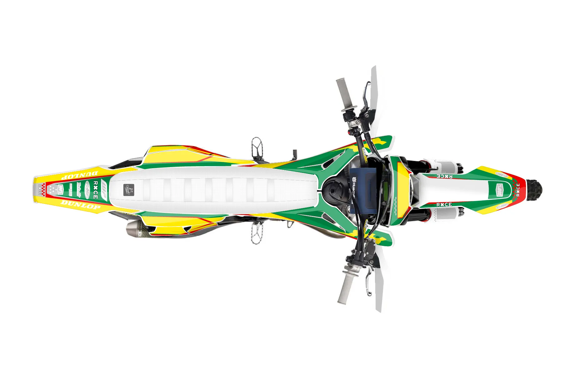 «rasta» — готовый комплект графики серии Staple для Husqvarna Enduro Graphic Kit Husqvarna TE 250 2020. В комплекте: графика на бак и боковые облицовки, крылья (переднее и заднее), передний щиток, номерные таблички, защита вилки. Материал: ПВХ-винил 80 мкр с холодной ламинацией 300 мкр, общая толщина 380 мкр; покрытие глянцевое или матовое на выбор. Устойчив к UV-излучению, воде, бензину и мойке высокого давления. Клей акриловый на сольвентной основе — постоянный, для гибких пластиков. На простых поверхностях монтируется без нагрева; для сложных изгибов рекомендуем фен. Этот пресет можно заказать как есть или взять за основу в конструкторе: поменять цвета, добавить стартовый номер и свой бренд. Производство — 3–5 рабочих дней, доставка по России СДЭКом или Почтой, по СНГ — курьерскими службами.