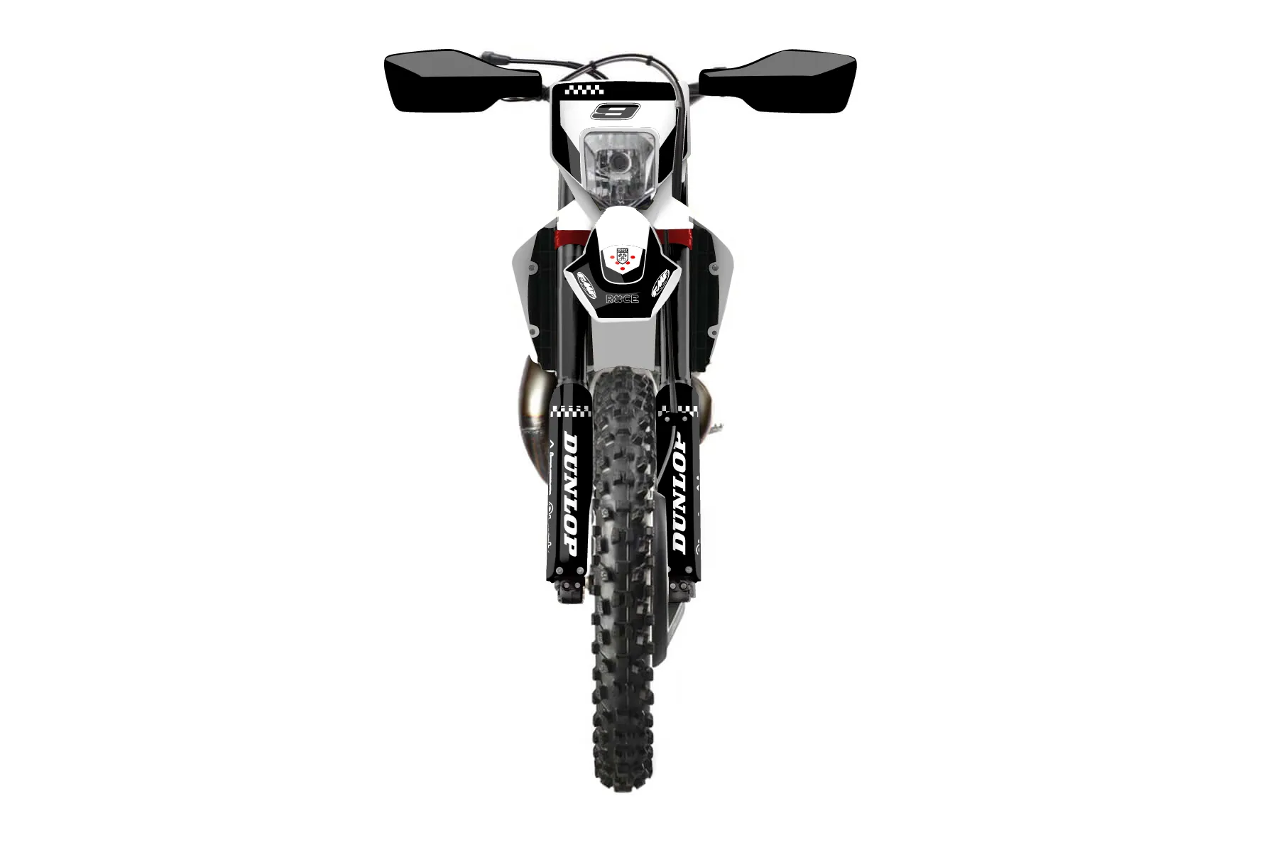 «Type» — готовый комплект графики серии Staple для Husqvarna Enduro Graphic Kit Husqvarna TE 250 2020. В комплекте: графика на бак и боковые облицовки, крылья (переднее и заднее), передний щиток, номерные таблички, защита вилки. Материал: ПВХ-винил 80 мкр с холодной ламинацией 300 мкр, общая толщина 380 мкр; покрытие глянцевое или матовое на выбор. Устойчив к UV-излучению, воде, бензину и мойке высокого давления. Клей акриловый на сольвентной основе — постоянный, для гибких пластиков. На простых поверхностях монтируется без нагрева; для сложных изгибов рекомендуем фен. Этот пресет можно заказать как есть или взять за основу в конструкторе: поменять цвета, добавить стартовый номер и свой бренд. Производство — 3–5 рабочих дней, доставка по России СДЭКом или Почтой, по СНГ — курьерскими службами.