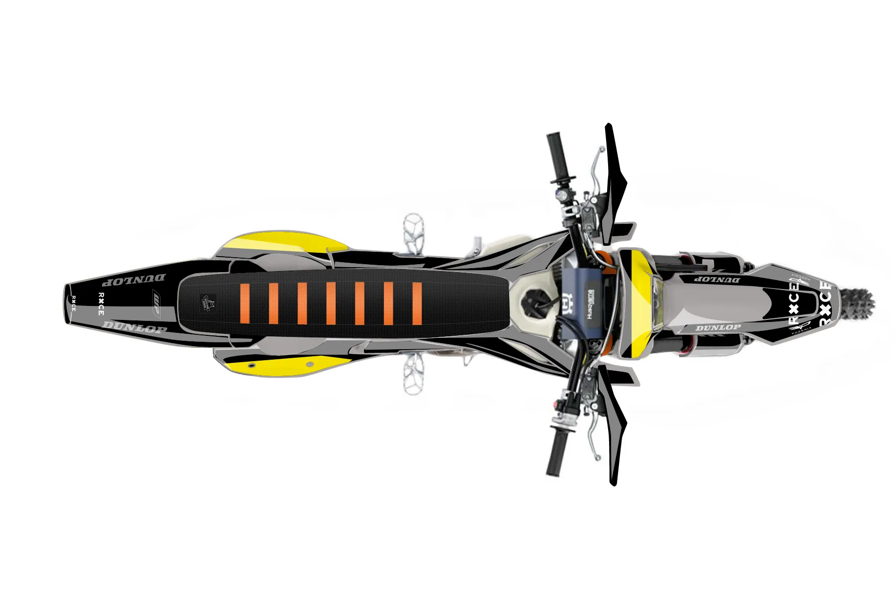 «TE250 Black/orange» — готовый комплект графики серии Maverick для Husqvarna Enduro Graphic Kit Husqvarna TE 250 2024. В комплекте: графика на бак и боковые облицовки, крылья (переднее и заднее), передний щиток, номерные таблички, защита вилки. Материал: ПВХ-винил 80 мкр с холодной ламинацией 300 мкр, общая толщина 380 мкр; покрытие глянцевое или матовое на выбор. Устойчив к UV-излучению, воде, бензину и мойке высокого давления. Клей акриловый на сольвентной основе — постоянный, для гибких пластиков. На простых поверхностях монтируется без нагрева; для сложных изгибов рекомендуем фен. Этот пресет можно заказать как есть или взять за основу в конструкторе: поменять цвета, добавить стартовый номер и свой бренд. Производство — 3–5 рабочих дней, доставка по России СДЭКом или Почтой, по СНГ — курьерскими службами.