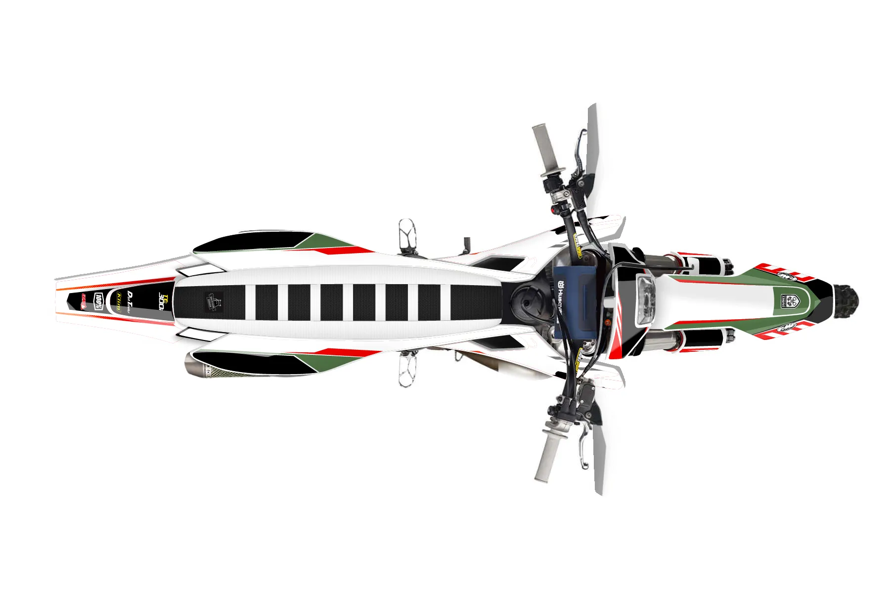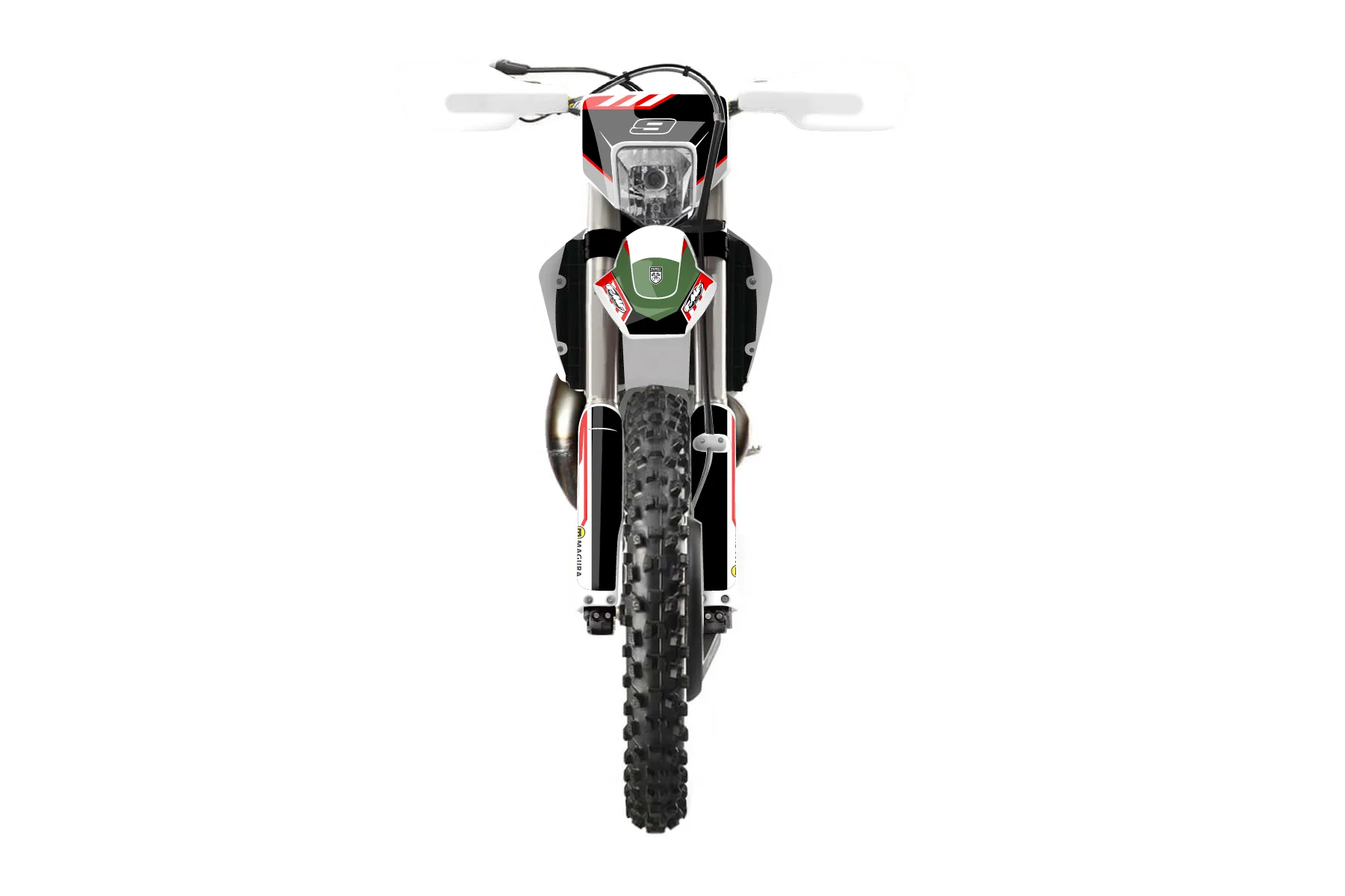 «CustomDesign 333» — готовый комплект графики серии Maverick для Husqvarna Enduro Graphic Kit Husqvarna TE 300 2017. В комплекте: графика на бак и боковые облицовки, крылья (переднее и заднее), передний щиток, номерные таблички, защита вилки. Материал: ПВХ-винил 80 мкр с холодной ламинацией 300 мкр, общая толщина 380 мкр; покрытие глянцевое или матовое на выбор. Устойчив к UV-излучению, воде, бензину и мойке высокого давления. Клей акриловый на сольвентной основе — постоянный, для гибких пластиков. На простых поверхностях монтируется без нагрева; для сложных изгибов рекомендуем фен. Этот пресет можно заказать как есть или взять за основу в конструкторе: поменять цвета, добавить стартовый номер и свой бренд. Производство — 3–5 рабочих дней, доставка по России СДЭКом или Почтой, по СНГ — курьерскими службами.