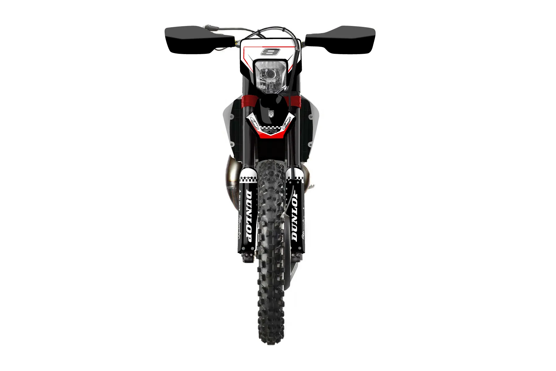 «Rage» — готовый комплект графики серии Staple для Husqvarna Enduro Graphic Kit Husqvarna TE 300 2017. В комплекте: графика на бак и боковые облицовки, крылья (переднее и заднее), передний щиток, номерные таблички, защита вилки. Материал: ПВХ-винил 80 мкр с холодной ламинацией 300 мкр, общая толщина 380 мкр; покрытие глянцевое или матовое на выбор. Устойчив к UV-излучению, воде, бензину и мойке высокого давления. Клей акриловый на сольвентной основе — постоянный, для гибких пластиков. На простых поверхностях монтируется без нагрева; для сложных изгибов рекомендуем фен. Этот пресет можно заказать как есть или взять за основу в конструкторе: поменять цвета, добавить стартовый номер и свой бренд. Производство — 3–5 рабочих дней, доставка по России СДЭКом или Почтой, по СНГ — курьерскими службами.