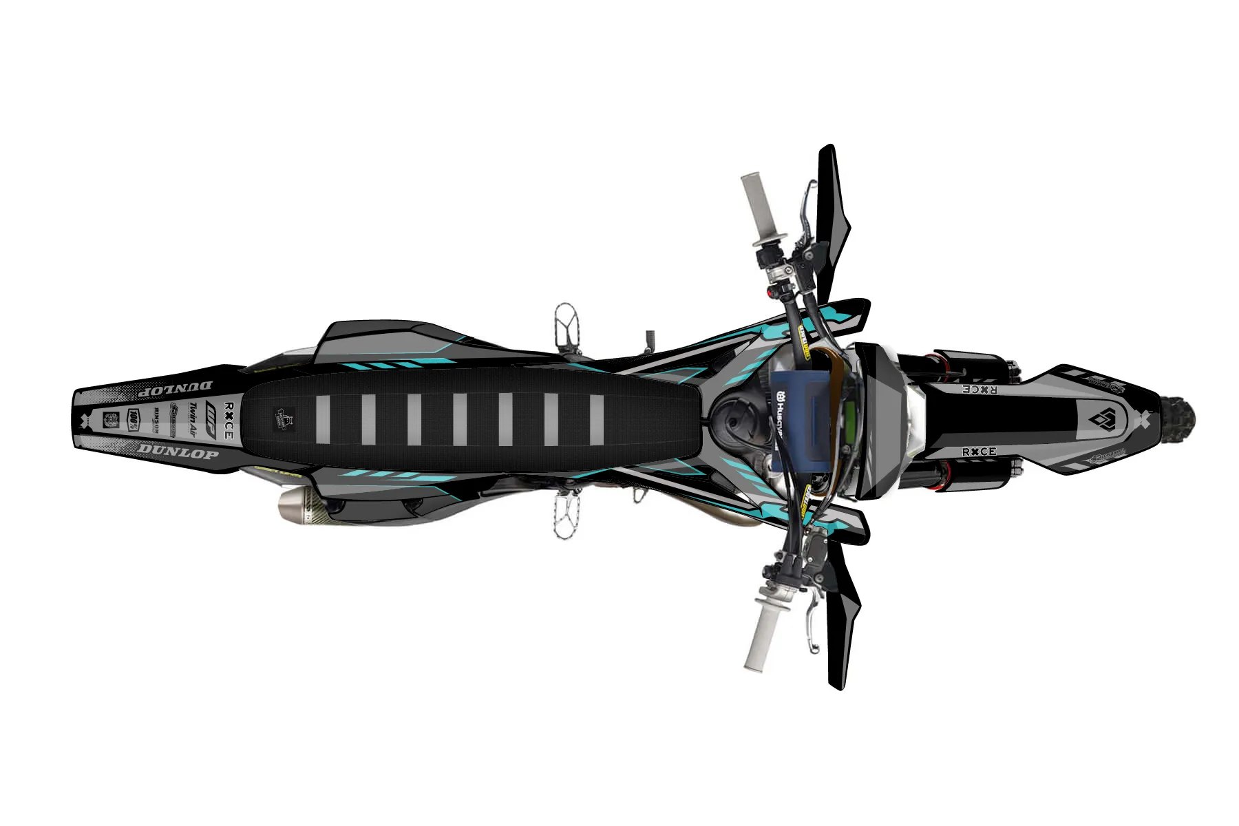 «Husky te300 black grey turquoise 1» — готовый комплект графики серии Maverick для Husqvarna Enduro Graphic Kit Husqvarna TE 300 2020. В комплекте: графика на бак и боковые облицовки, крылья (переднее и заднее), передний щиток, номерные таблички, защита вилки. Материал: ПВХ-винил 80 мкр с холодной ламинацией 300 мкр, общая толщина 380 мкр; покрытие глянцевое или матовое на выбор. Устойчив к UV-излучению, воде, бензину и мойке высокого давления. Клей акриловый на сольвентной основе — постоянный, для гибких пластиков. На простых поверхностях монтируется без нагрева; для сложных изгибов рекомендуем фен. Этот пресет можно заказать как есть или взять за основу в конструкторе: поменять цвета, добавить стартовый номер и свой бренд. Производство — 3–5 рабочих дней, доставка по России СДЭКом или Почтой, по СНГ — курьерскими службами.