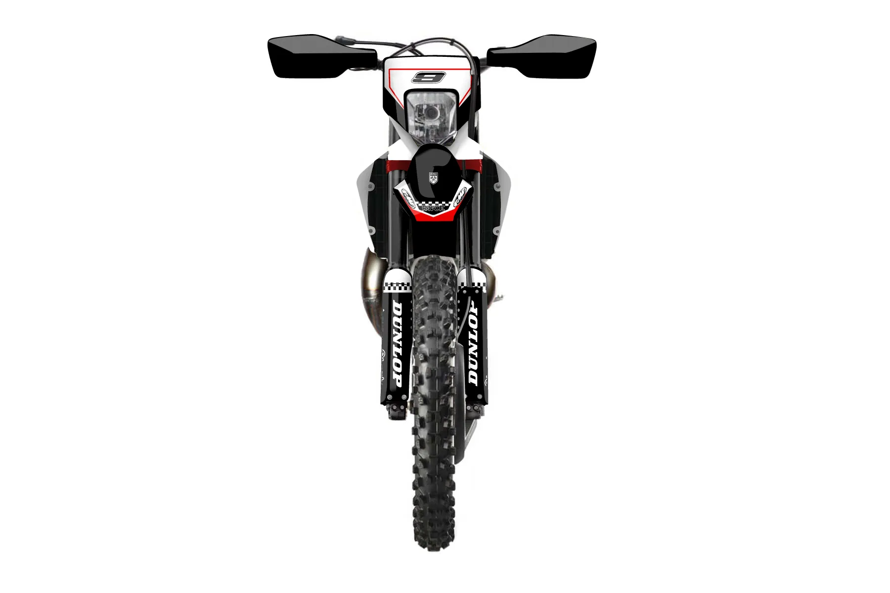 «Rage» — готовый комплект графики серии Staple для Husqvarna Enduro Graphic Kit Husqvarna TE 300 2020. В комплекте: графика на бак и боковые облицовки, крылья (переднее и заднее), передний щиток, номерные таблички, защита вилки. Материал: ПВХ-винил 80 мкр с холодной ламинацией 300 мкр, общая толщина 380 мкр; покрытие глянцевое или матовое на выбор. Устойчив к UV-излучению, воде, бензину и мойке высокого давления. Клей акриловый на сольвентной основе — постоянный, для гибких пластиков. На простых поверхностях монтируется без нагрева; для сложных изгибов рекомендуем фен. Этот пресет можно заказать как есть или взять за основу в конструкторе: поменять цвета, добавить стартовый номер и свой бренд. Производство — 3–5 рабочих дней, доставка по России СДЭКом или Почтой, по СНГ — курьерскими службами.